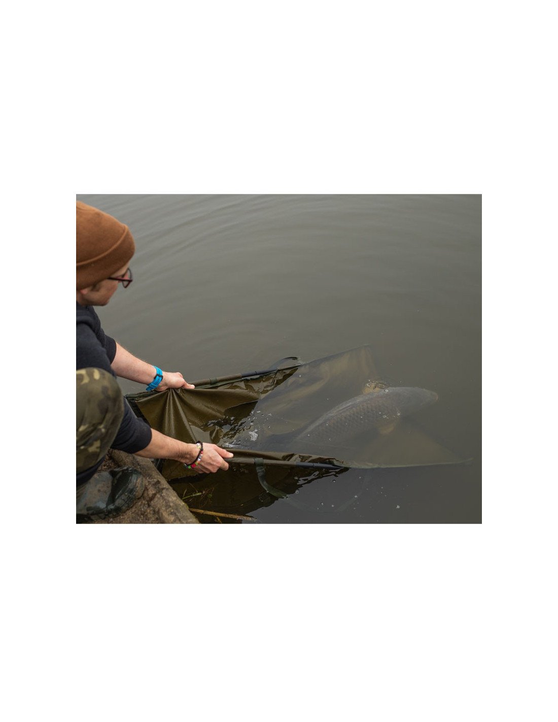 Darüber hinaus wurde die Schlinge so konstruiert, dass sie, auf der Wasseroberfläche, schwimmt, wodurch das Anheben eines Keschers (nicht inkludiert) nicht erforderlich ist, was einen zusätzlichen Schutz für den Karpfen darstellt.
