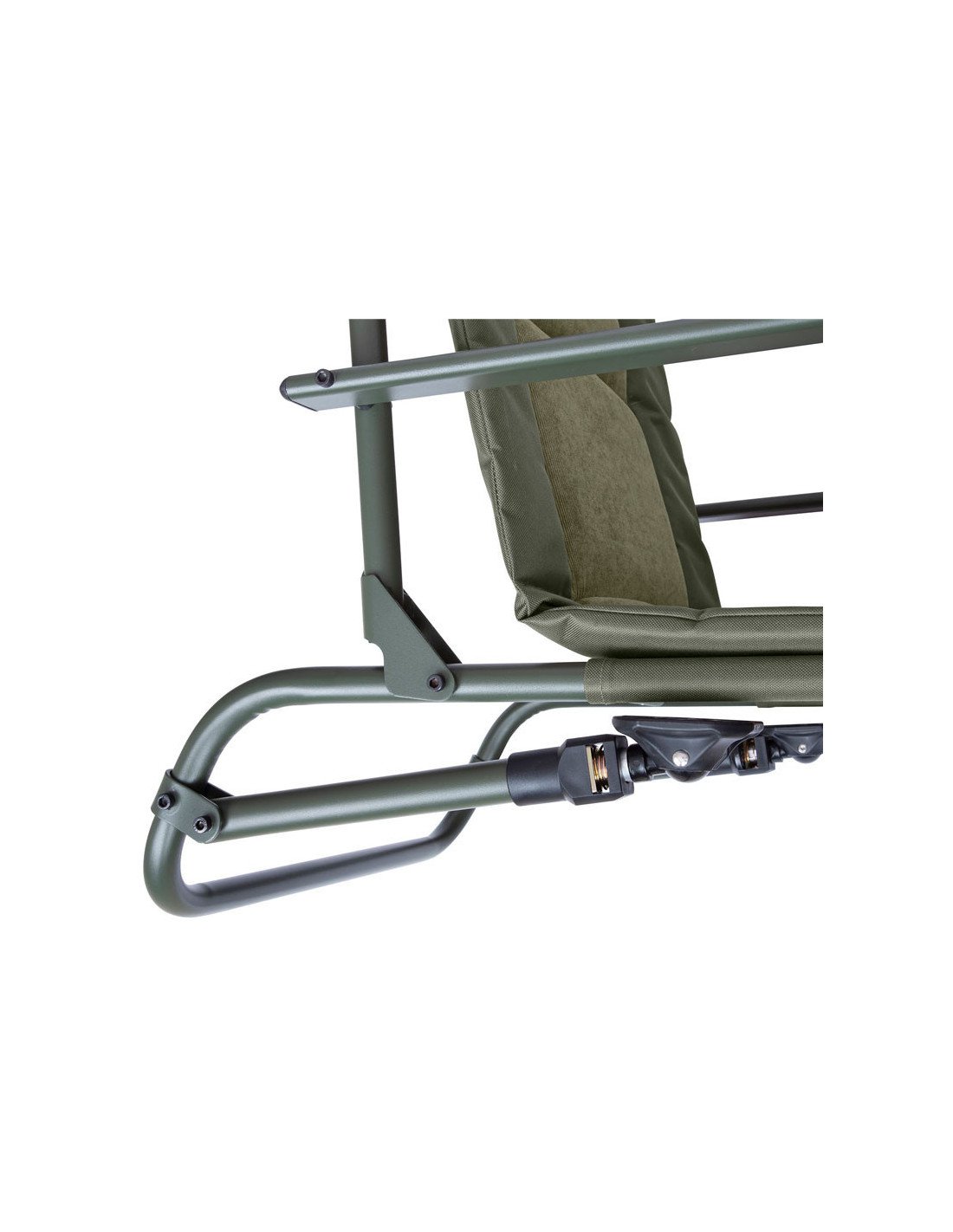 Die verstellbaren Beine dieses Fischerstuhls sind mit kompakten Schlammfüßen ausgestattet. Die Vorderbeine verfügen außerdem über Verriegelungsbügel, die dir eine bequeme und sicher Sitzposition ermöglichen. Die Schlammfüße hingegen geben dem Anglersessel, auch bei weicheren Böden, mehr Stabilität.