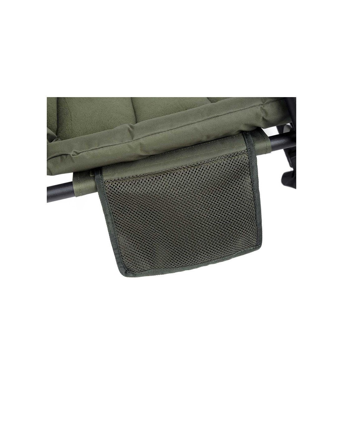 Nicht zu übersehen sind ebenso seine verstellbaren, gefederten Beine mit Grip-Lock Mechanismus und extragroßen Schlammfüßen, wodurch sich der Stuhl auch auf unebenem Terrain stabil positionieren lässt. Außerdem verhindern die Schlammfüße das Einsinken des Angelstuhls in den Boden, wenn der Untergrund weicher ist.