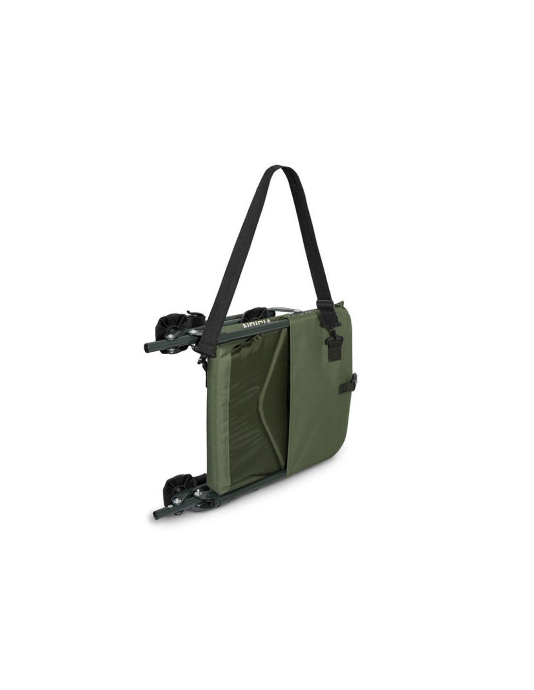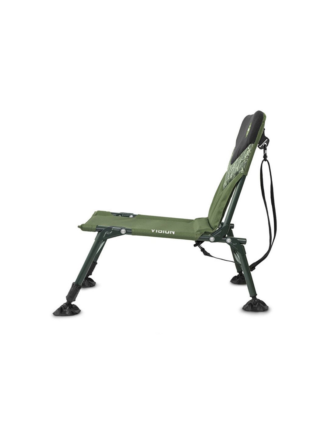Um dir den Transport deines Carpchairs zu erleichtern ist auf der Seiter des Vision ein Kunststoff-Clip, mit dem der Stuhl nach dem Zusammenklappen befestigt werden kann und der verhindert, dass er sich öffnet. Das zweite Gadget ist ein abnehmbarer Gurt, mit dem der Stuhl bequem auf der Schulter hängend getragen werden kann.