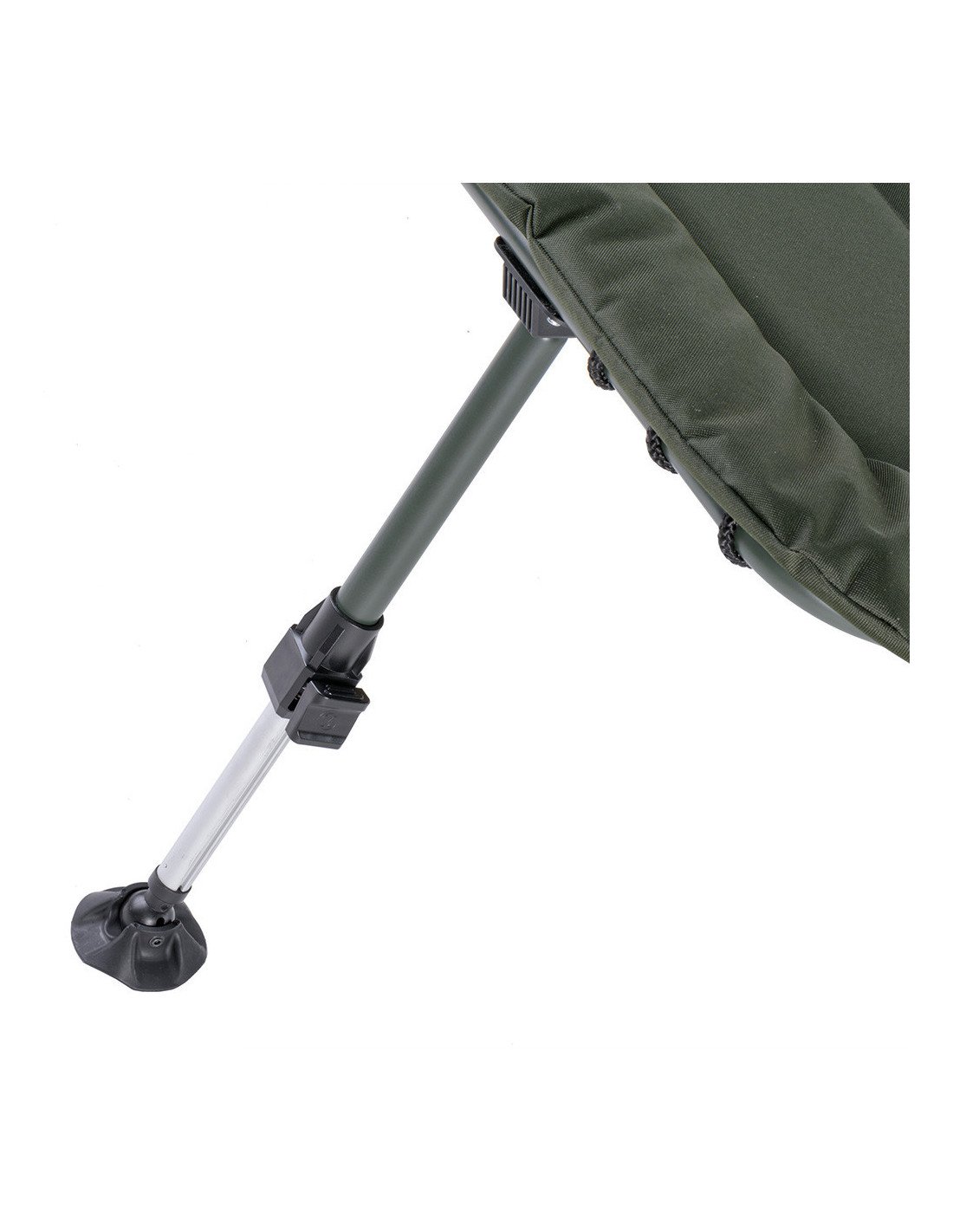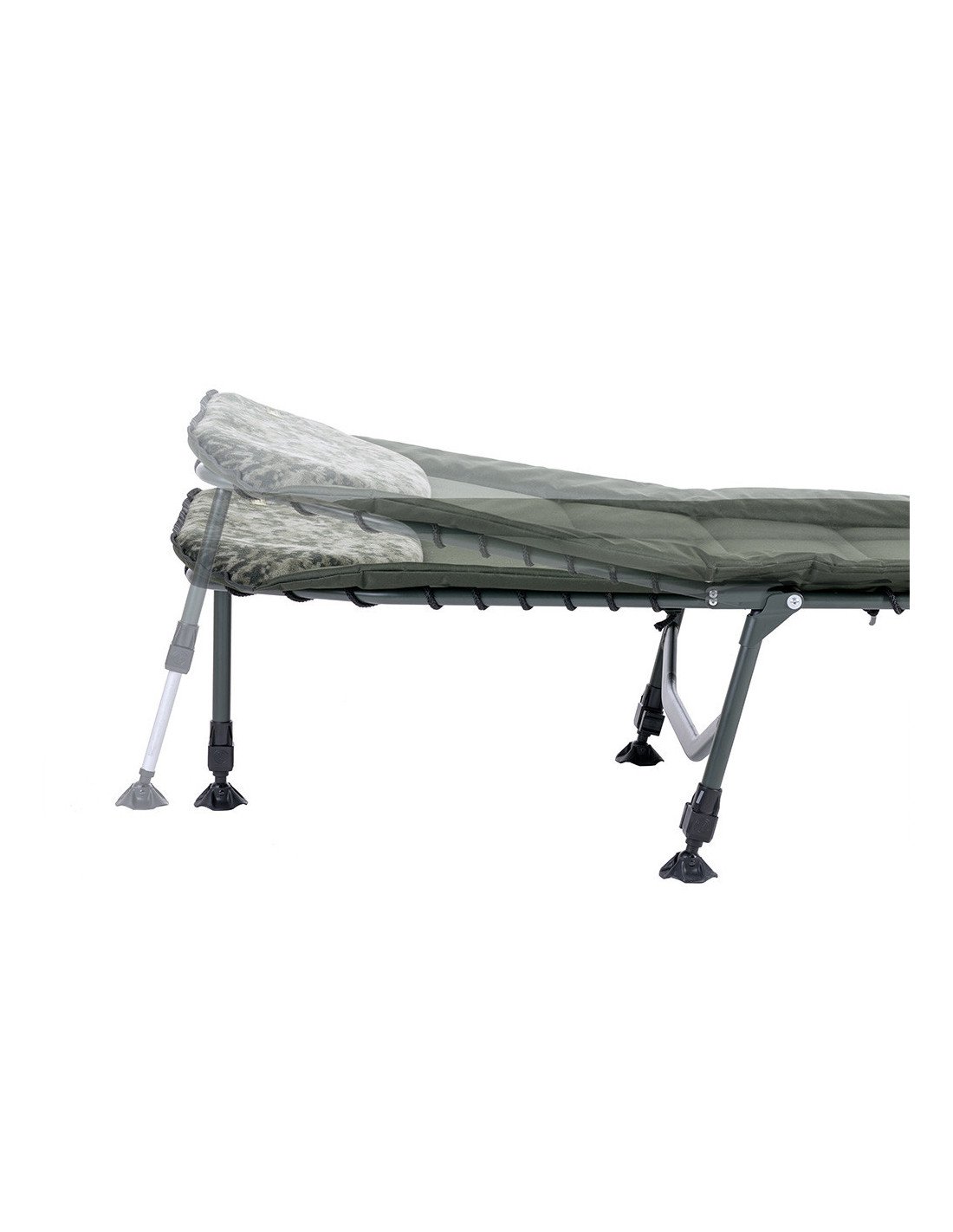 Die Einzelbeine am Kopf-, sowie am Fußende können separat angeklappt werden. Ebenso sind alle Beine dieser Angelliege. Stufenlos einstellbar, wodurch du selbst in unebenen Gelände eine gute Position zum schlafen einstellen kannst. Außerdem besitzt diese Karpfenliege große Schlammfüße, damit deine Liege selbst in matschigen Untergründen kaum einsinken kann.