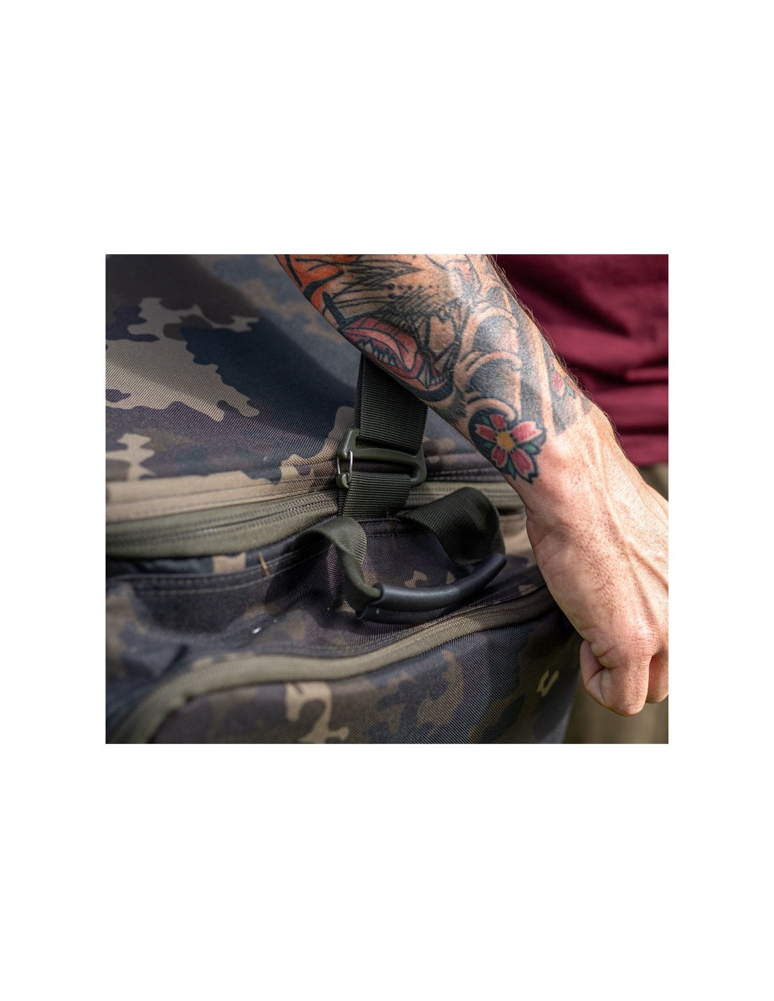 Für den Transport ist die Compac Medium Carryall Dark Kamo mit einem, im Schulterbereich, gepolsterten, abnehmbaren Schultergurt und 2 verstärkten Griffen, auf beiden kurzen Seiten, ausgestattet.