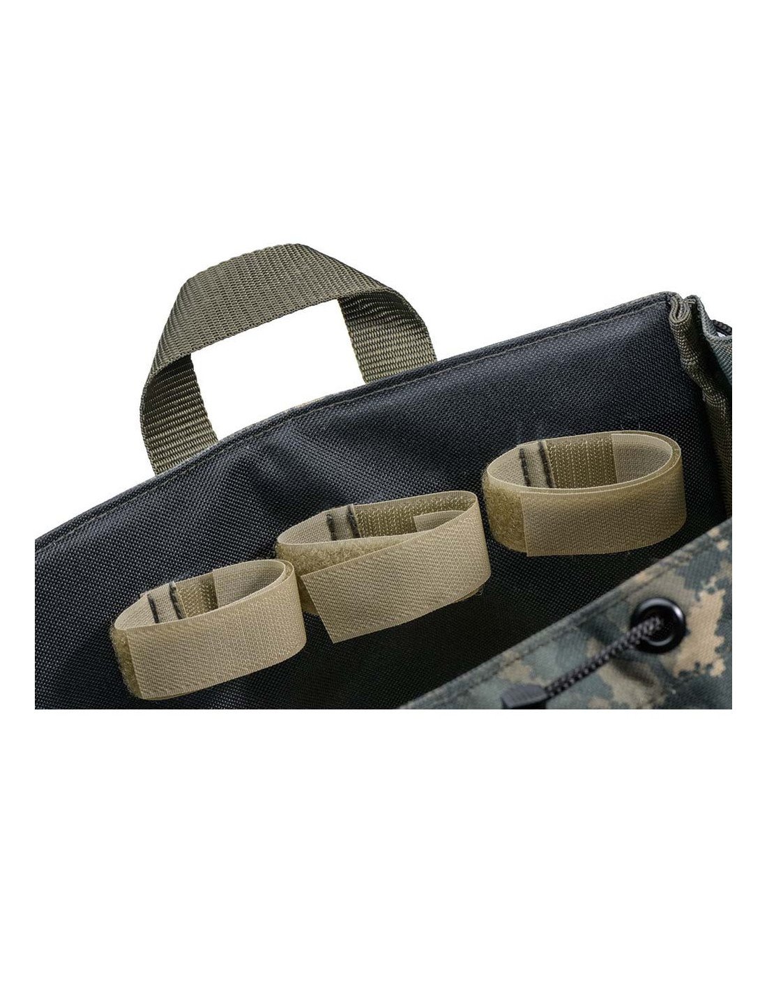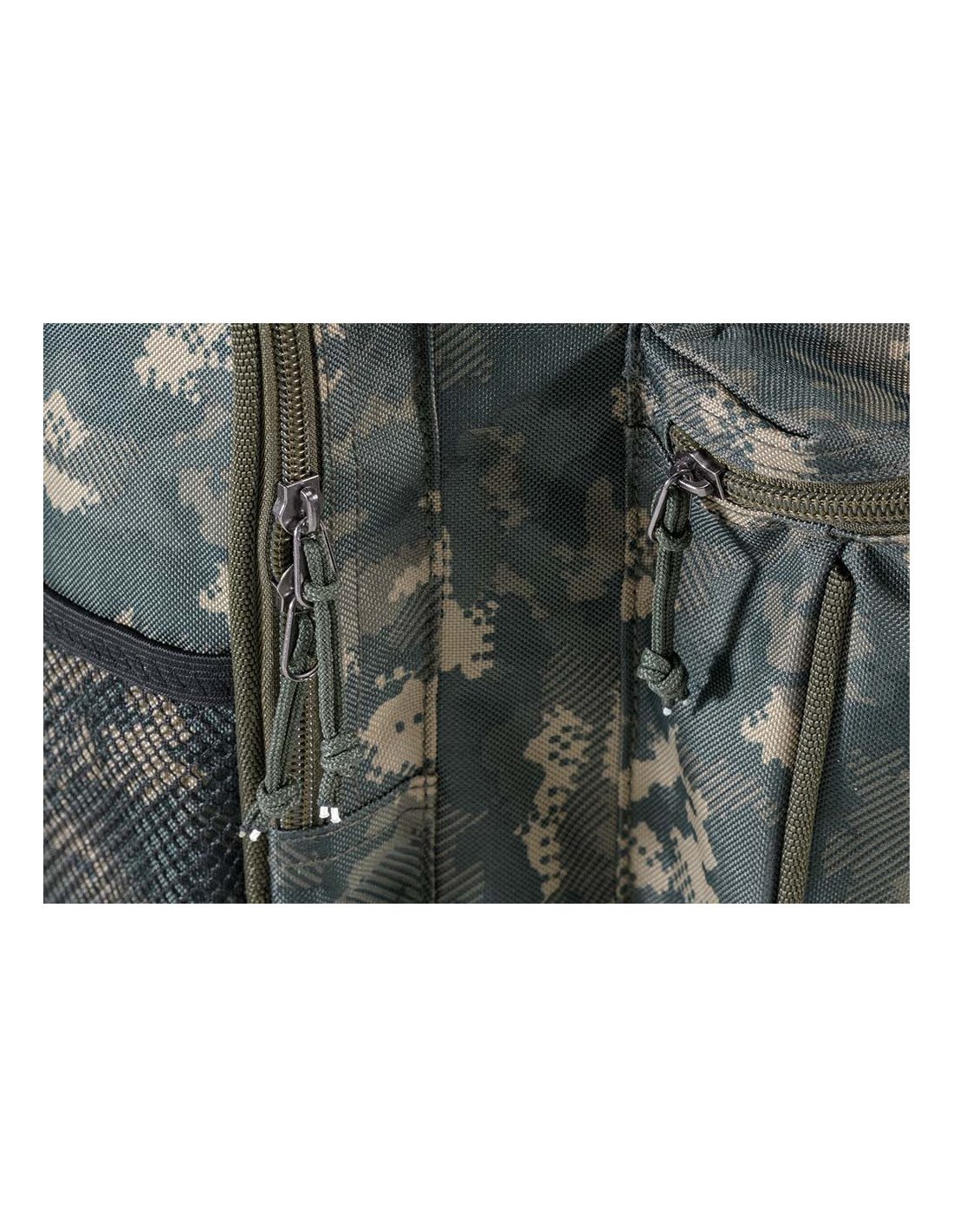 Transportiere dein Tackle, Teleskopruten, Banksticks und/oder Kescher, mit dem Rucksack Multi Camo 30, bequem vom Auto zum Hot Spot.
