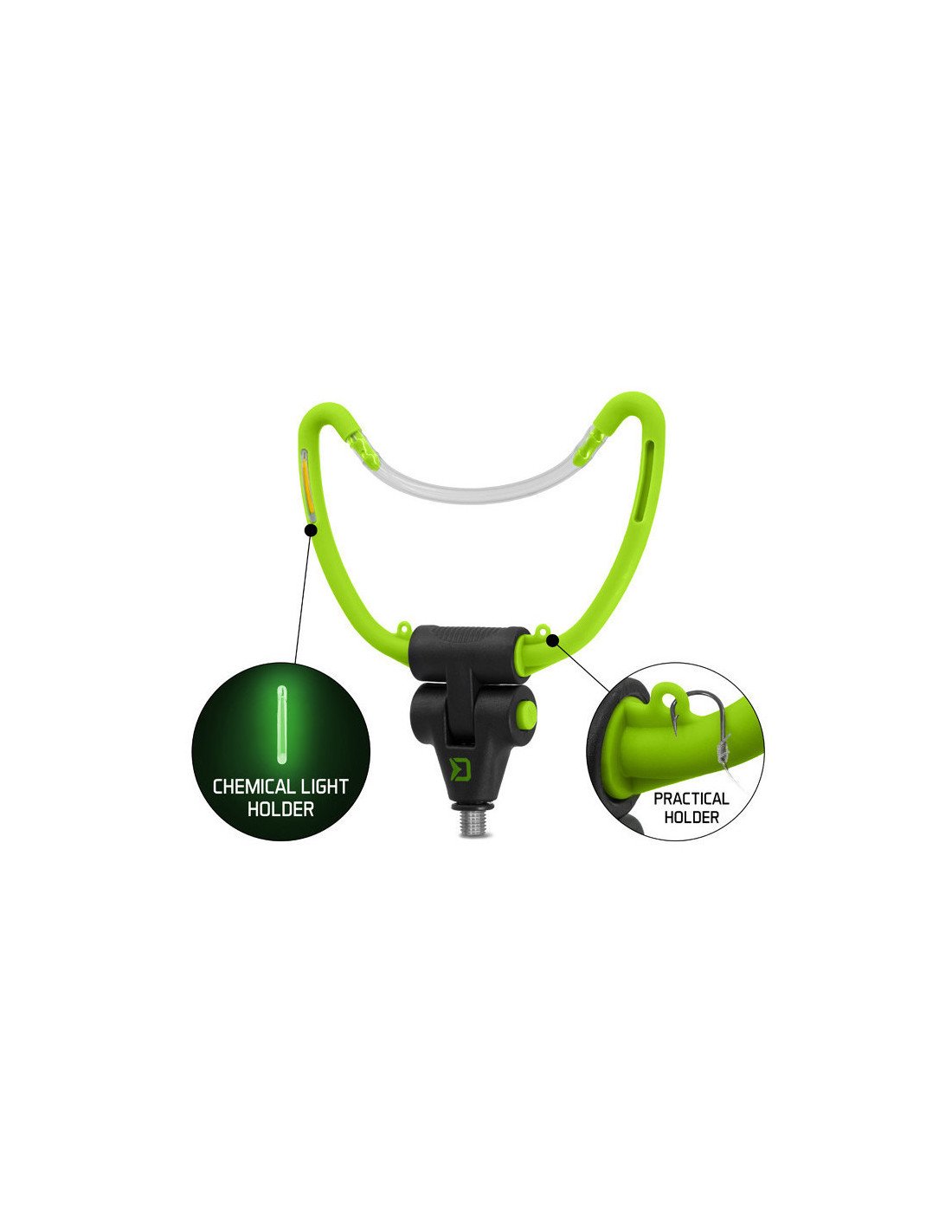 Der Halter hat 4 Löcher für Knicklichter am Körper, was Du besonders beim Nachtangeln schätzen wirst.