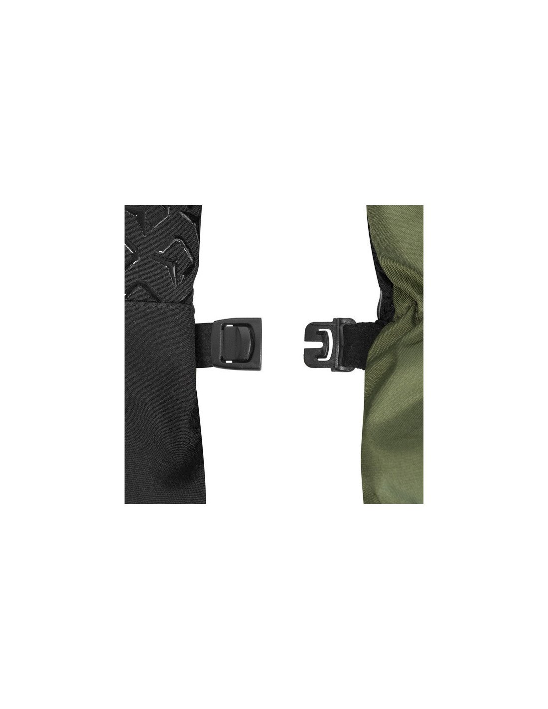 Ein Kunststoffclip an den Handschuhen ermöglicht es, die Handschuhe zusammenzuklippen.