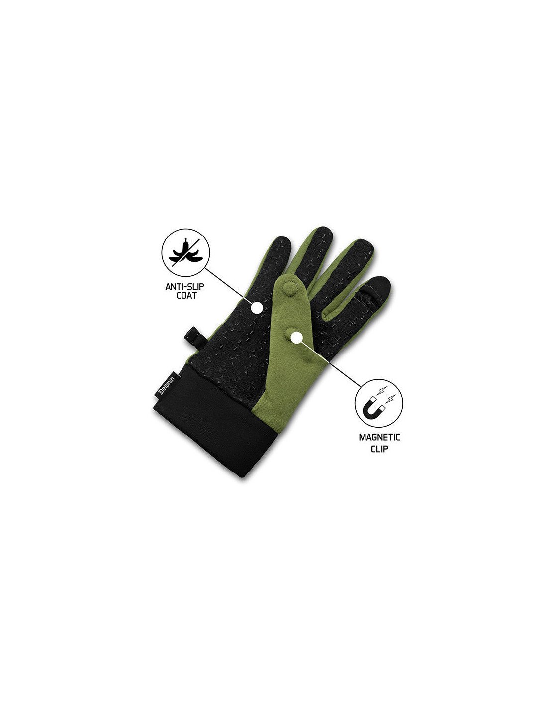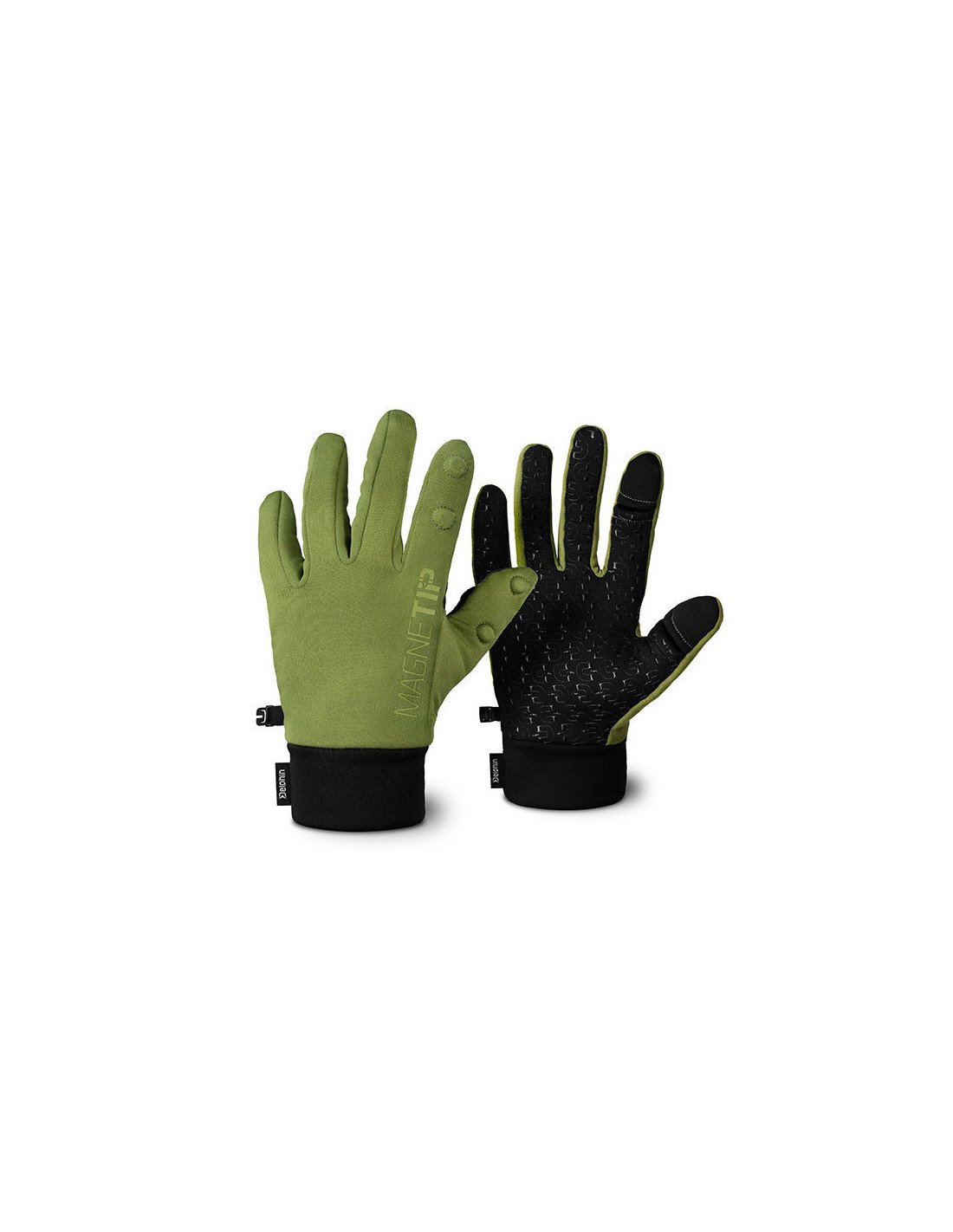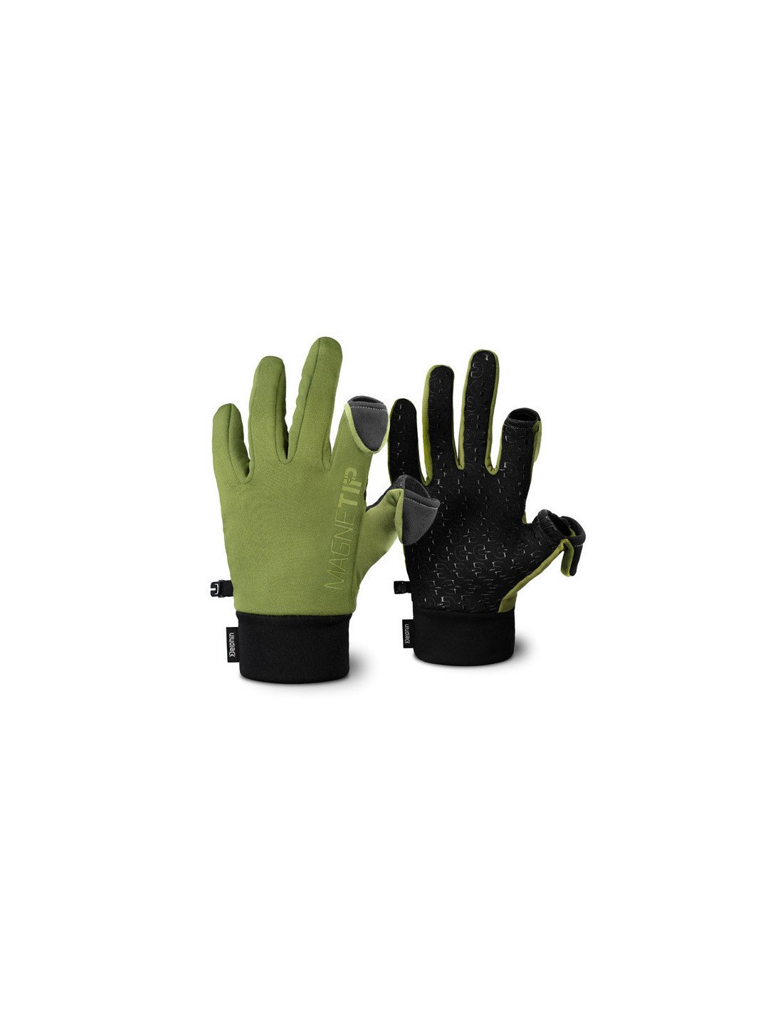 Die MagneTIP-Handschuhe sind im Bereich des Handgelenks mit einem doppelten Gewebe ausgestattet, um die Isolationseigenschaften zu erhöhen und die Handgelenke besser zu umschließen. Sie sind farblich abgestimmt in Grün mit den auffälligen Grafiken, stilvoll kombiniert mit Schwarz. Beide Handschuhe sind an einer Seite mit einem Kunststoffclip versehen, mit dem man sie verbinden und in der Tasche verstauen kann, wenn man sie braucht.