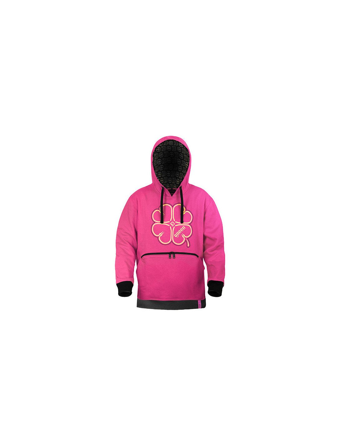Der Kapuzenpullover verfügt über eine verschließbare Fronttasche mit einem hochwertigen Doppelreißverschluss. An den Seiten befindet sich eine zusätzliche Tasche, in der man sich bei dem kälteren Wetter die Hände wärmen kann. Die Kapuze ist außen rosa und innen schwarz und mit Delphin-Logos oder gelben vierblättrigen Kleeblättern versehen. Sie verfügt außerdem über einen schwarzen Kordelzug, mit dem die Kapuze bei Bedarf hochgezogen werden kann. Die Ärmel und die Taille sind mit den schwarzen Gummizügen versehen, die für eine bessere Passform sorgen.