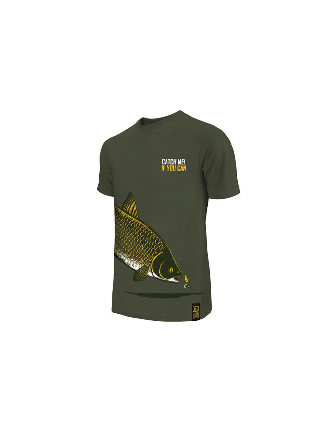 Catch me! Amurkarpfen ist in Dunkelgrün mit einem fressenden Amurkarpfens gestaltet, was den Fans des Fangens dieser Fische sicher gefallen wird.