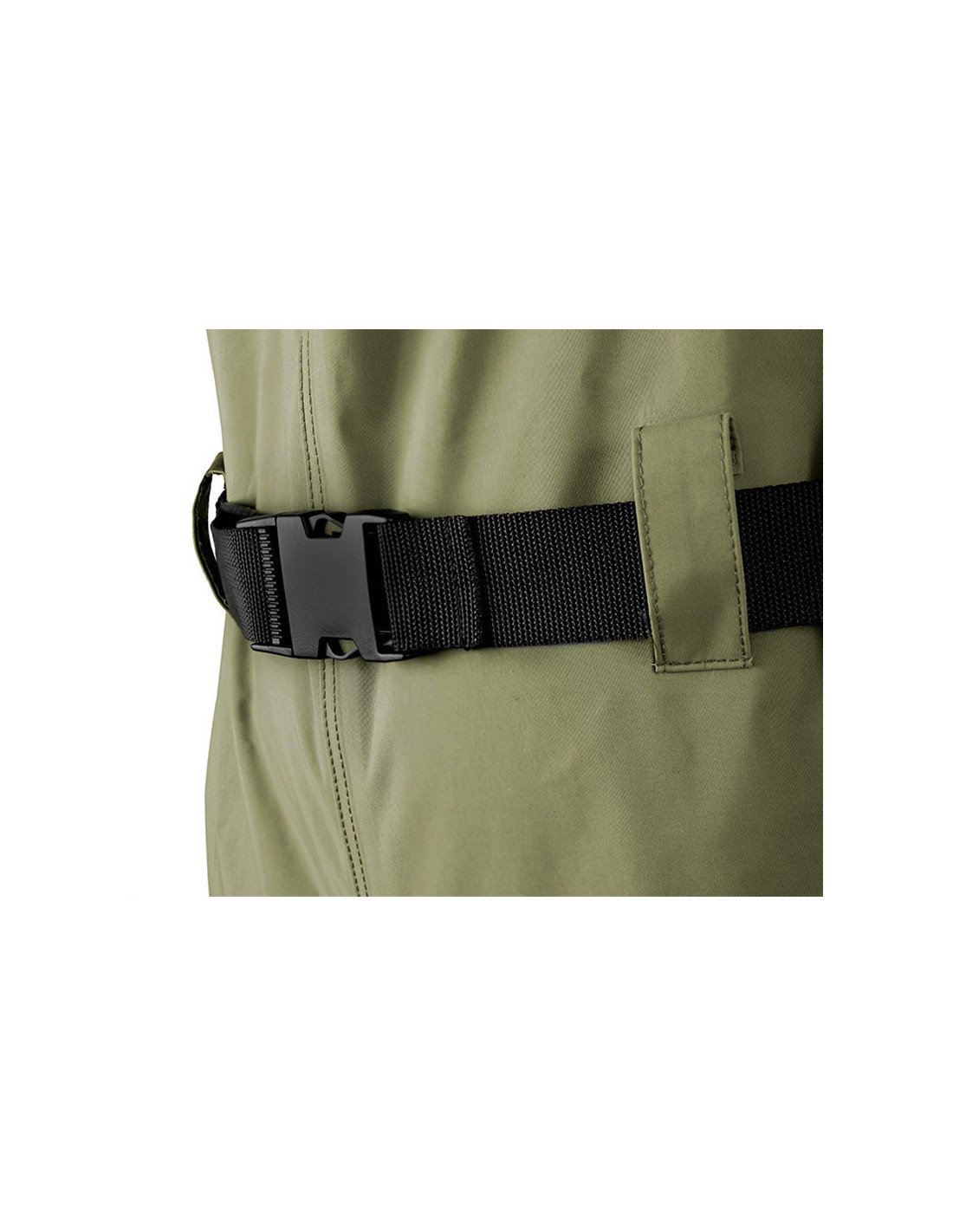 Für eine perfekte Anpassung an deinen Körperbau ist die Wathose mit verstellbaren schwarzen Schulterträgern und einem abnehmbaren schwarzen Gürtel ausgestattet.