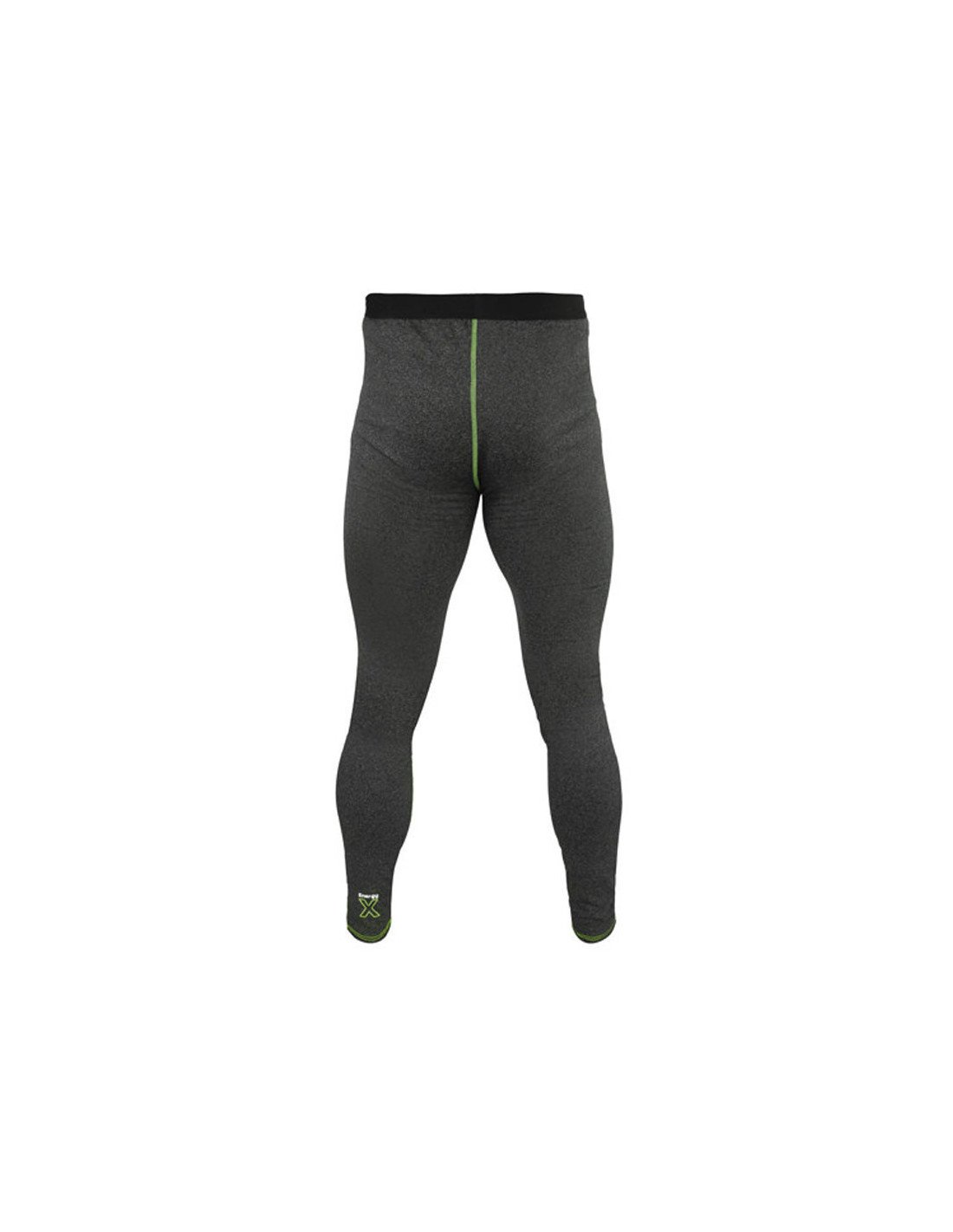 Richtest du deine Aufmerksamkeit nun auf die Hose so fällt dir ihr schwarzer, elastischer Bund als Erstes auf. Dieser Bund passt sich durch seine Elastizität deinem Körpertyp an und sichert, auch bei viel Bewegung, den perfekten Sitz des Oberteils. Der konisch zulaufende Abschluss der langen Unterhose, im Knöchelbereich, trägt ebenso zum Wärmekomfort bei. Auch die dunkelgraue, sportliche Thermounterhose wird designtechnisch durch jeweils ein grün-weißes Logo auf der linken Seite, im Bereich der Hüfte und beim Abschluss des Hosenbeins, ergänzt.