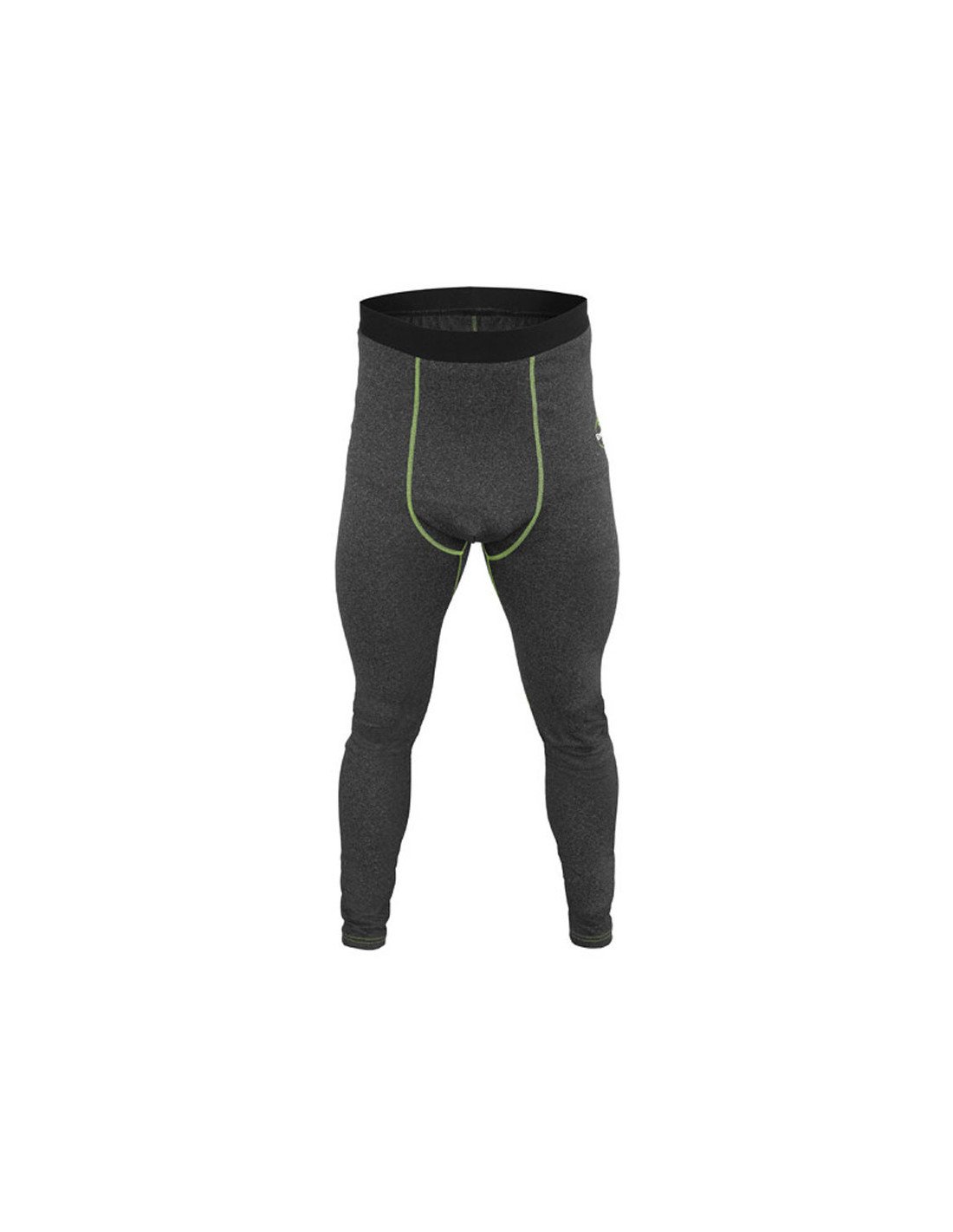 Richtest du deine Aufmerksamkeit nun auf die Hose so fällt dir ihr schwarzer, elastischer Bund als Erstes auf. Dieser Bund passt sich durch seine Elastizität deinem Körpertyp an und sichert, auch bei viel Bewegung, den perfekten Sitz des Oberteils. Der konisch zulaufende Abschluss der langen Unterhose, im Knöchelbereich, trägt ebenso zum Wärmekomfort bei. Auch die dunkelgraue, sportliche Thermounterhose wird designtechnisch durch jeweils ein grün-weißes Logo auf der linken Seite, im Bereich der Hüfte und beim Abschluss des Hosenbeins, ergänzt.