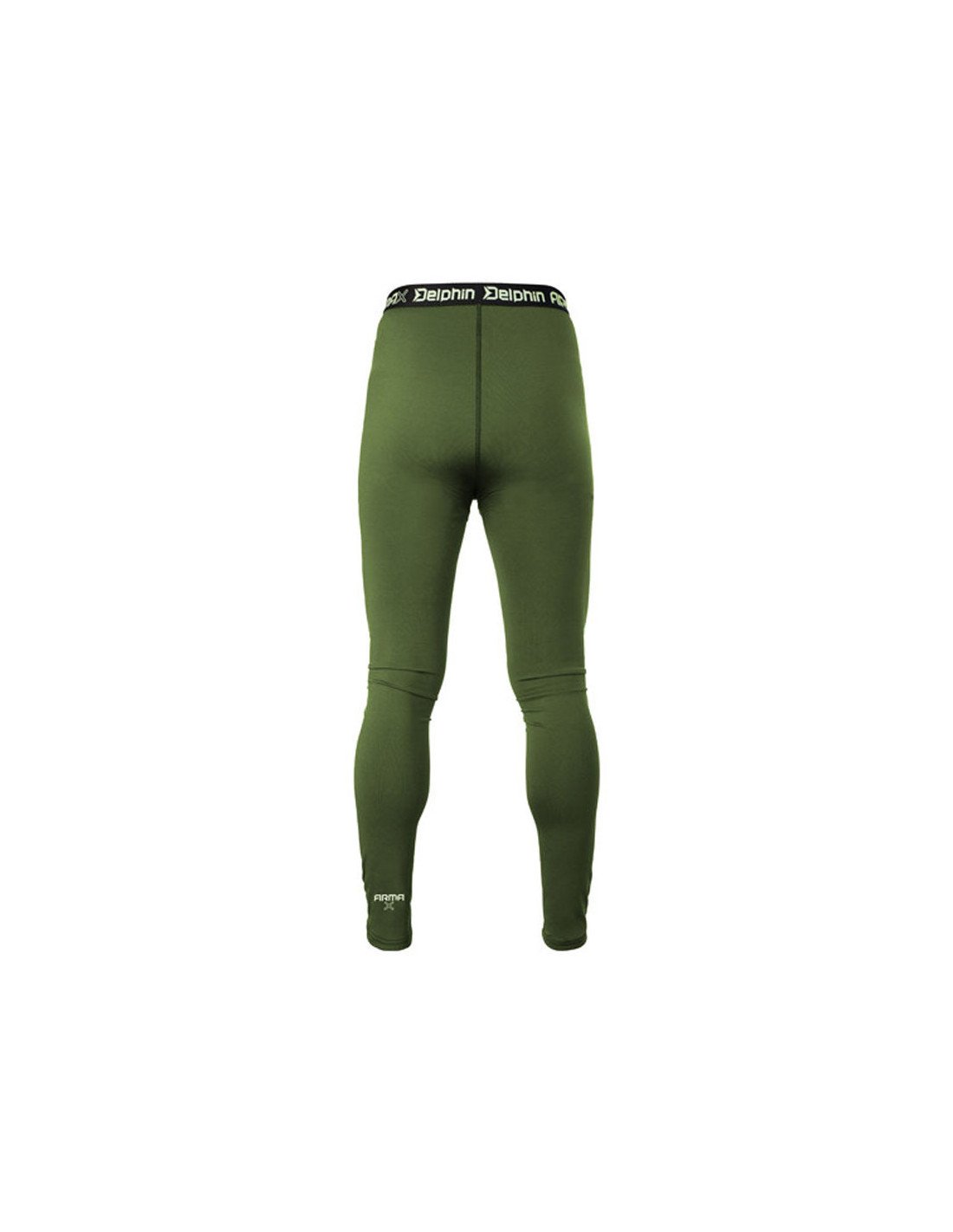 Richtest du deine Aufmerksamkeit nun auf die Hose so fällt dir ihr schwarzer, elastischer Bund mit weißer Schrift als Erstes auf. Dieser Bund passt sich durch seine Elastizität deinem Körpertyp an und sichert, auch bei viel Bewegung, den perfekten Sitz des Oberteils. Der konisch zulaufende Abschluss der langen Unterhose, im Knöchelbereich, trägt ebenso zum Wärmekomfort bei. Auch die Thermounterhose ist im dezenten Grün gehalten und wird designtechnisch durch jeweils ein helles Logo auf der linken Seite, im Bereich der Hüfte, sowie beim Abschluss des Hosenbeins, ergänzt.