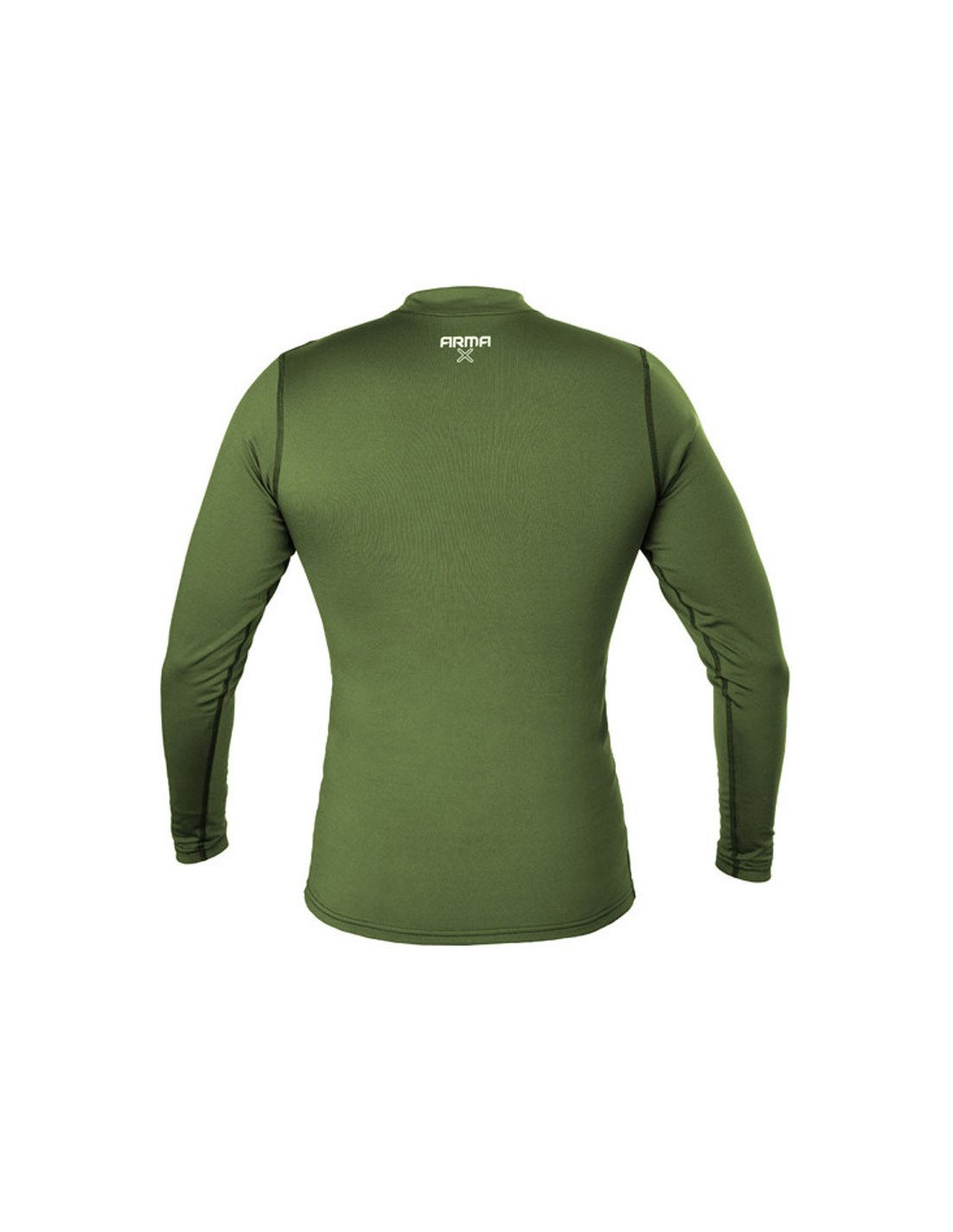 Betrachtest du zuerst das Oberteil so fallen dir auf den ersten Blick die langen Ärmel und der erhöhte Kragen auf, die für die optimale Körpertemperatur sorgen. Außerdem ist das Oberteil leicht verlängert, um eine ideale Abdeckung mit der Unterhose, auch bei körperlich anstrengenderen Aktivitäten, zu ermöglichen. Überdies wird die dezente, grüne Färbung des Oberteils durch ein helles Logo auf der Brust und im Nacken, sowie den Buchstaben X auf der rechten Schulter ergänzt.