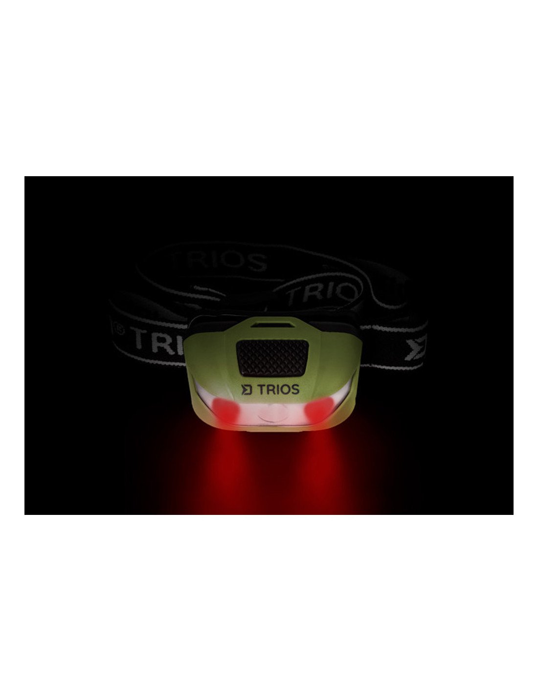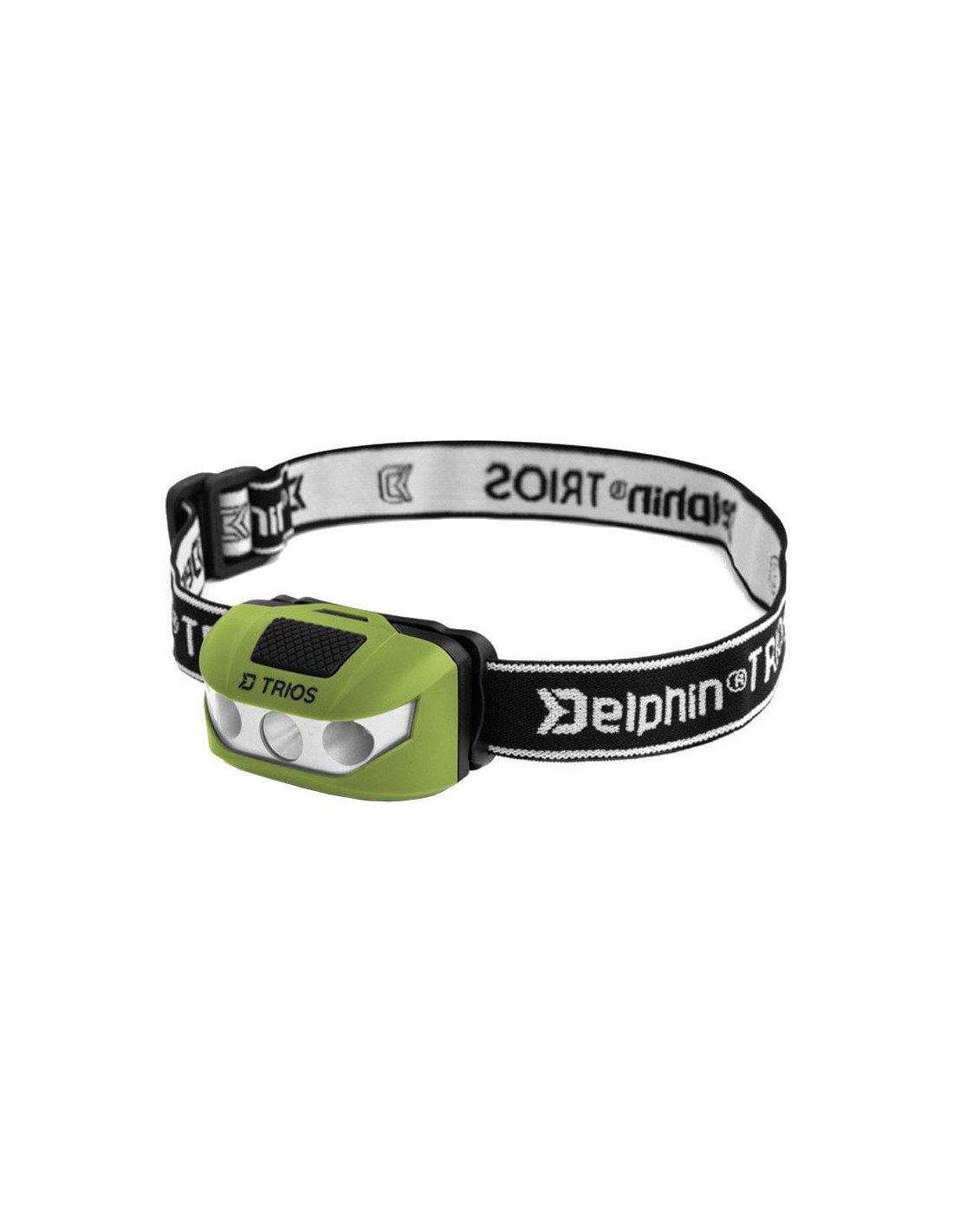 Außerdem ist die Kopflampe mit einem elastischen Band ausgestattet, welches durch das Logo von Delphin und ihren Namen TRIOS verziert ist. Dieses Band verhindert, dass die Lampe dir vom Kopf rutscht und wie eine Halskette um deinen Hals baumelt.