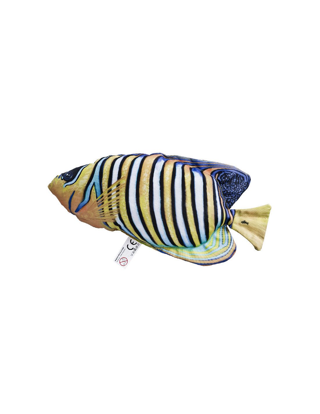 Beim Pfauen-Kaiserfisch Big, aus dem Hause Gaby, handelt es sich um einen Plüschfisch, also ein Stofftier, das eine lebensechte Zeichnung besitzt und in Handarbeit hergestellt wird.