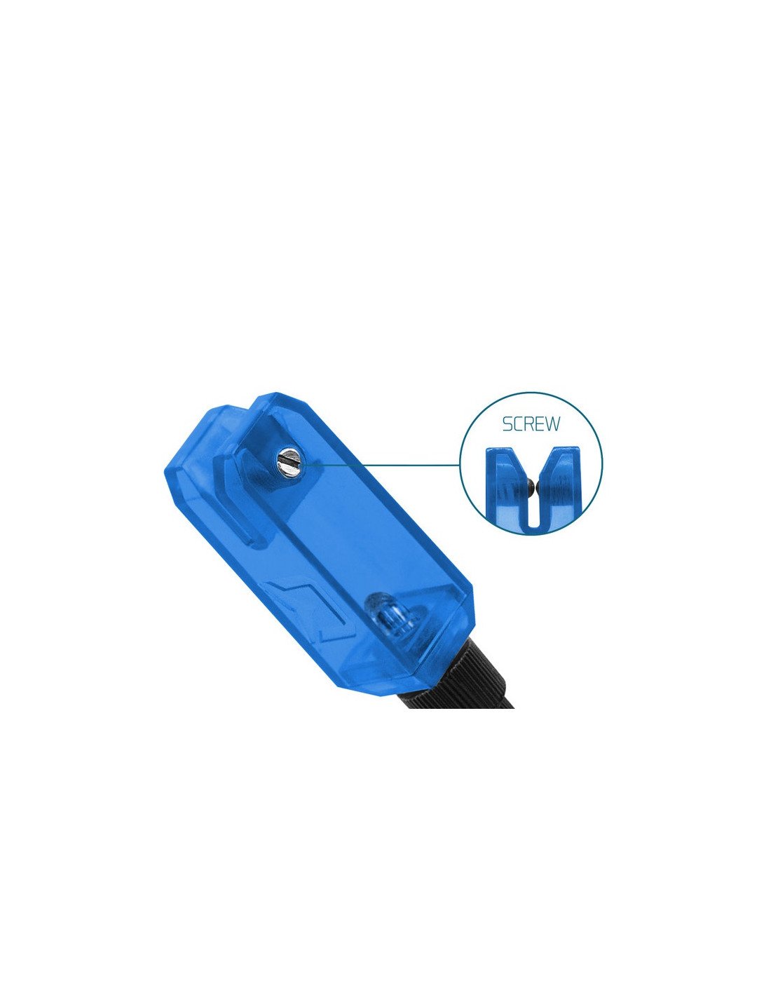 Das Befestigungssystem mit zwei Kugelflächen garantiert sicheren Halt an der Schnur, während die Anpresskraft über eine Feststellschraube präzise eingestellt werden kann.
