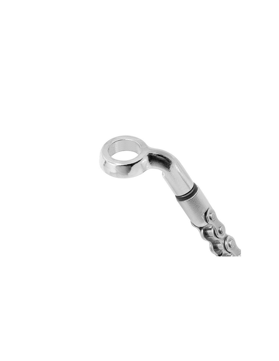 Die massive Metallkette, die an eine Fahrradkette erinnert, verhindert ein störendes Pendeln und sorgt für einen festen Halt.