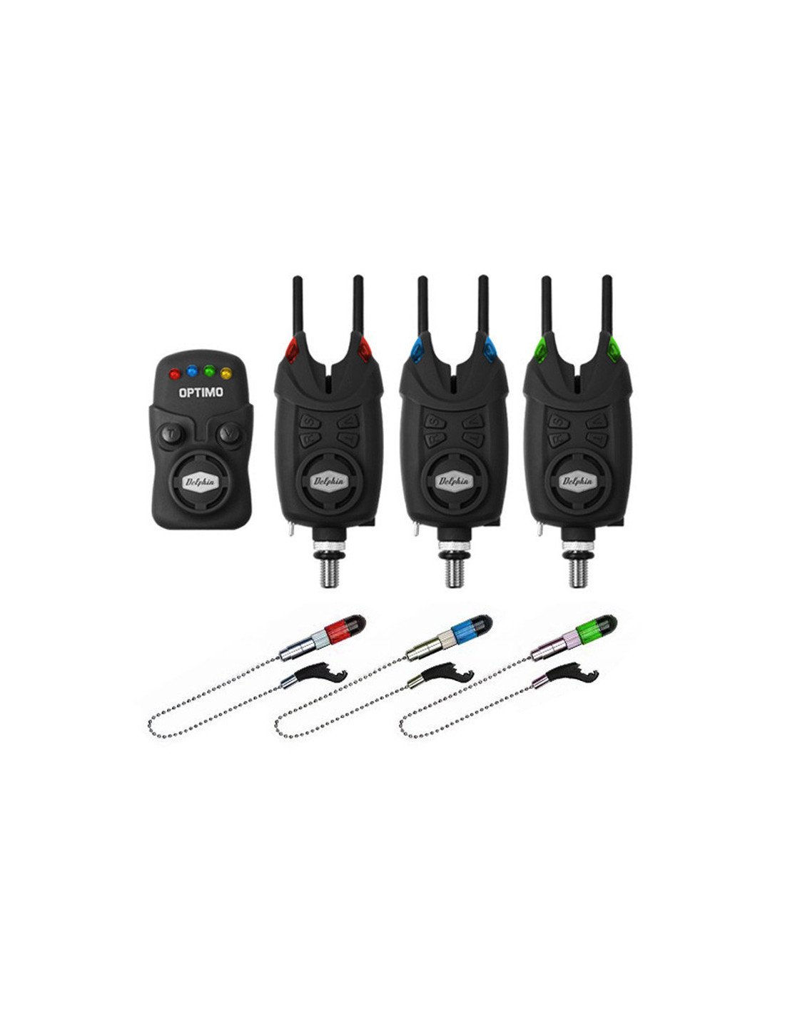 Delphin Optimo 9V 3+3+1 Funkbissanzeiger Komplettset mit Pendelbissanzeiger und Snag Ears Bite Alarm