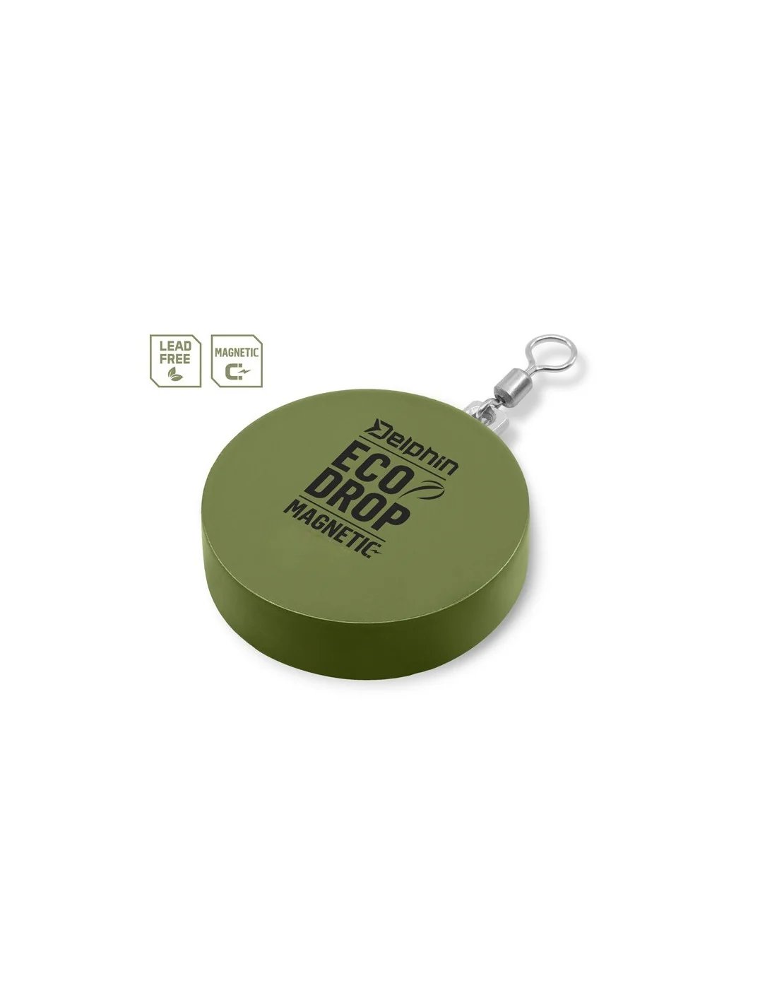 Runde Form, Magnetisierung und grünes Tarnprofil des EcoDROP-Gewichts ermöglichen einfaches Angeln, Wiederfinden im Wasser und unauffälliges Verhalten bei vorsichtigen Fischen.