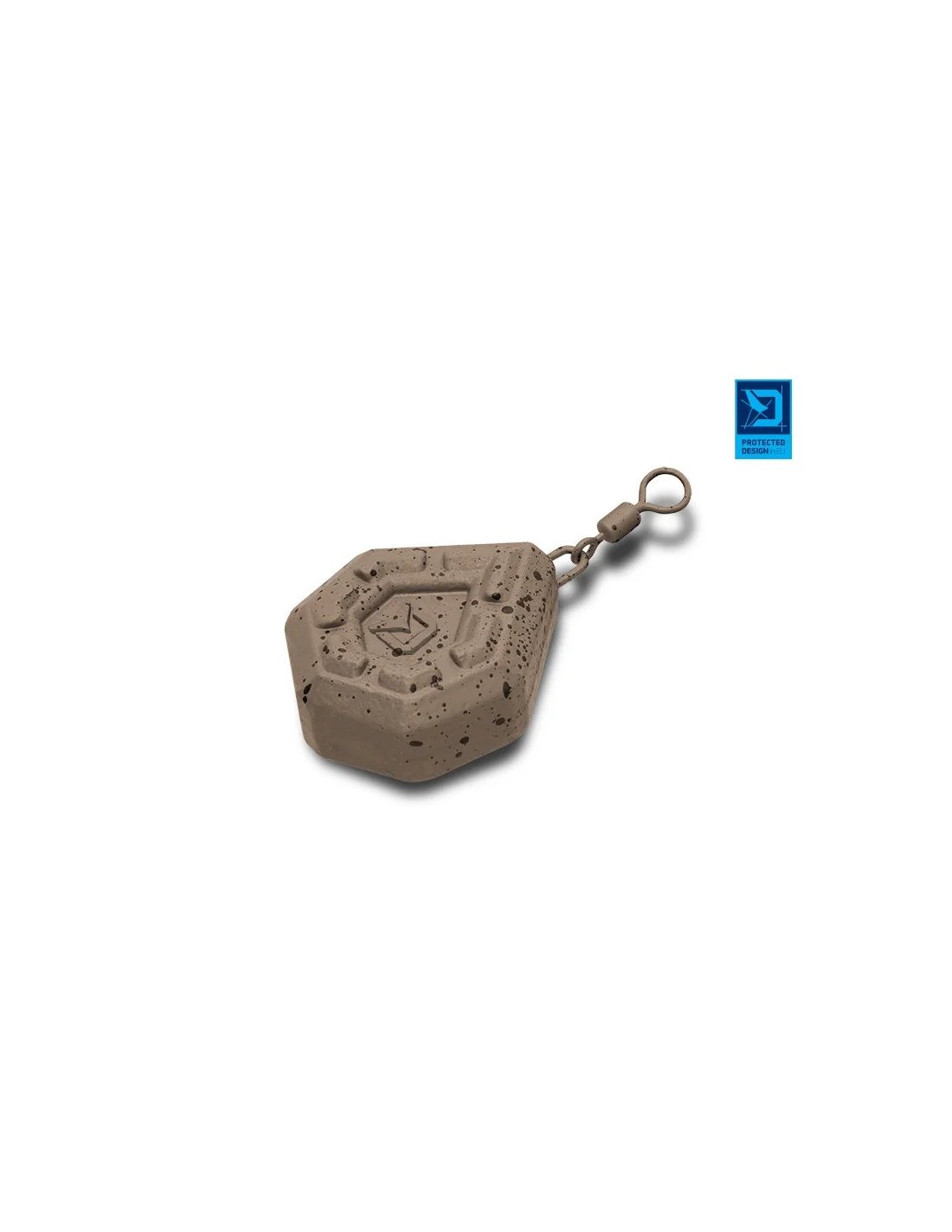 Zusätzliche Vorsprünge an den Hauptflächen verhindern ein ungewolltes Verrutschen am Gewässergrund und erhöhen die Stabilität der Montage. Die Oberfläche ist in natürlichen Brauntönen mit schwarzen Sprenkeln gehalten, wodurch das Gewicht perfekt getarnt wird.