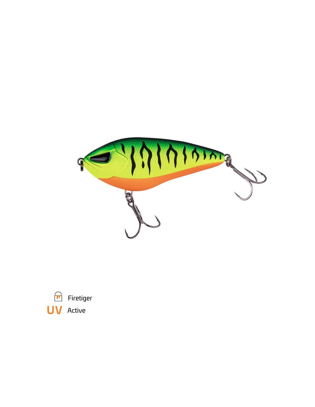 Unverwechselbar an diesem Jerkbait ist sein böses Erscheinungsbild und Laufverhalten. Er läuft nämlich in ausgeprägten Bahnen von rechts nach links. Mit anderen Worten bedeutet dies, dass dieser Wobbler über einen ausgeprägten Zick Zack Lauf verfügt.