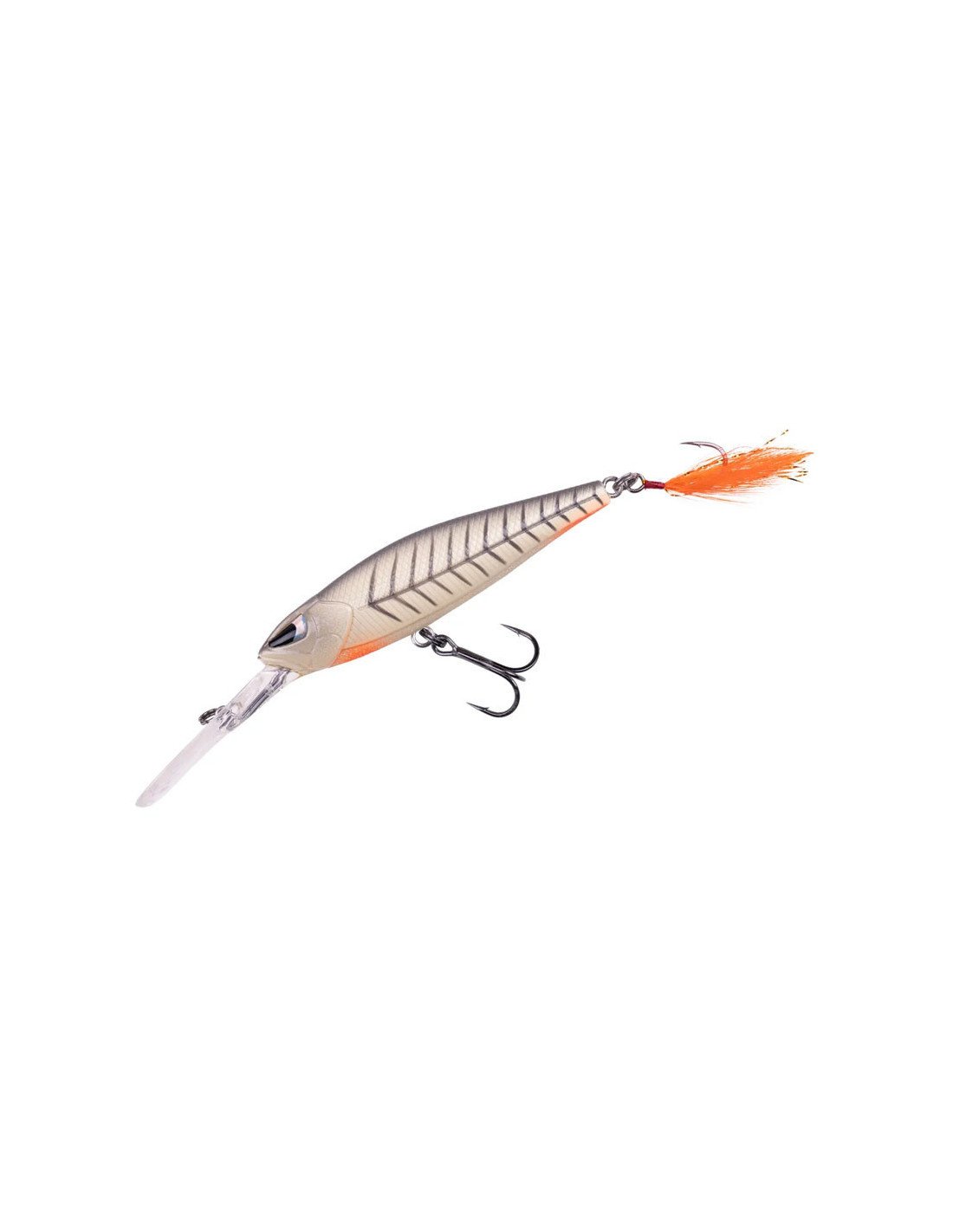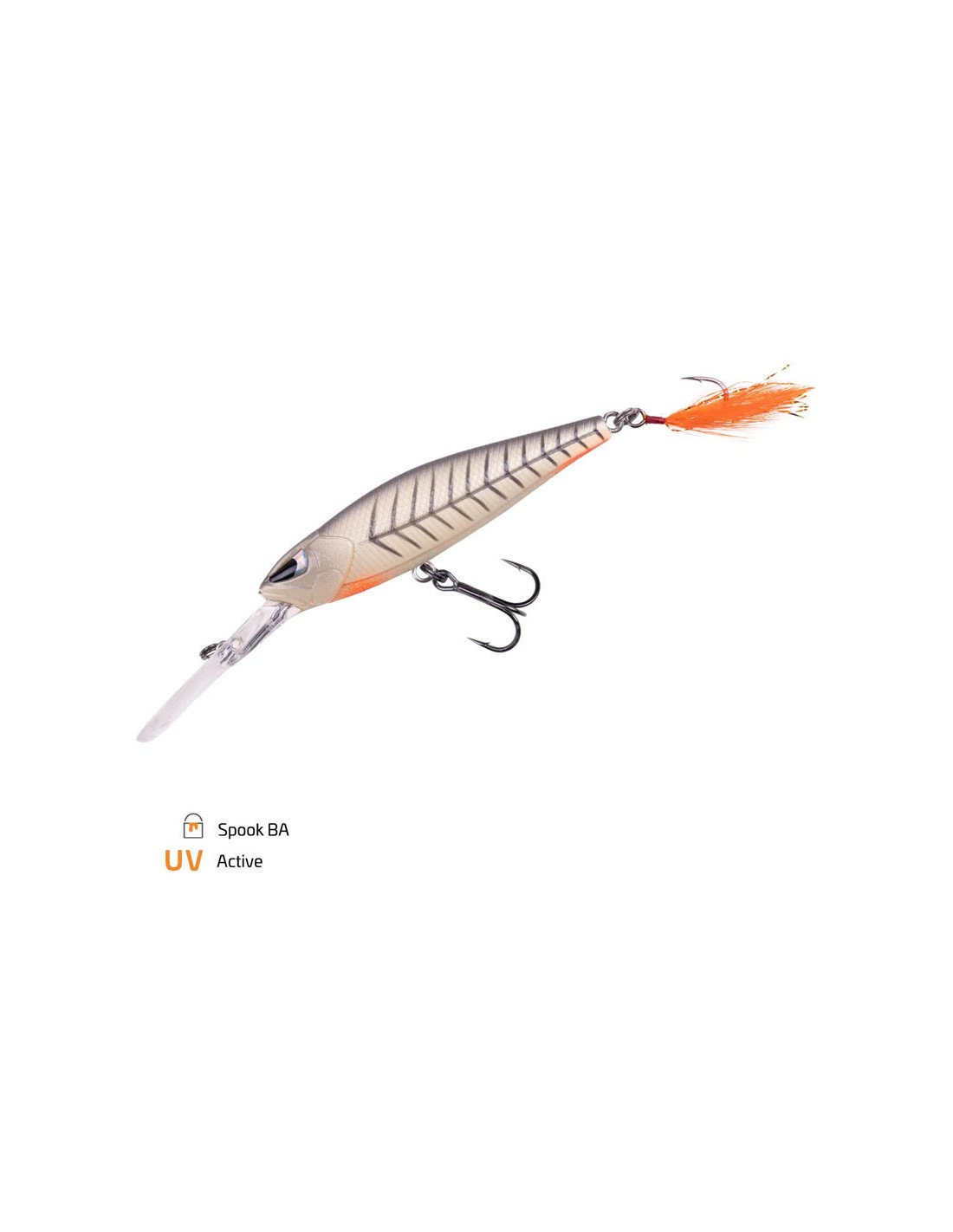 Hinzu kommt, dass bei der BA-Variante der hintere Drillingshaken durch einen Feathered Single Hook ersetzt wurde. Dieser aufwendig mit Federn geschmückte Haken sendet nicht nur einen gigantischen optischen Reiz aus, sondern verletzt auch die Fische weniger. Vom Vorteil ist dies, insbesondere wenn kleine Barsche den Wobbler tief im Rachen haben. Der vordere Drilling hingegen wird, auch bei dieser Variante beibehalten, da Barsche den Bauchdrilling im Normalfall nicht tief verschlucken können.