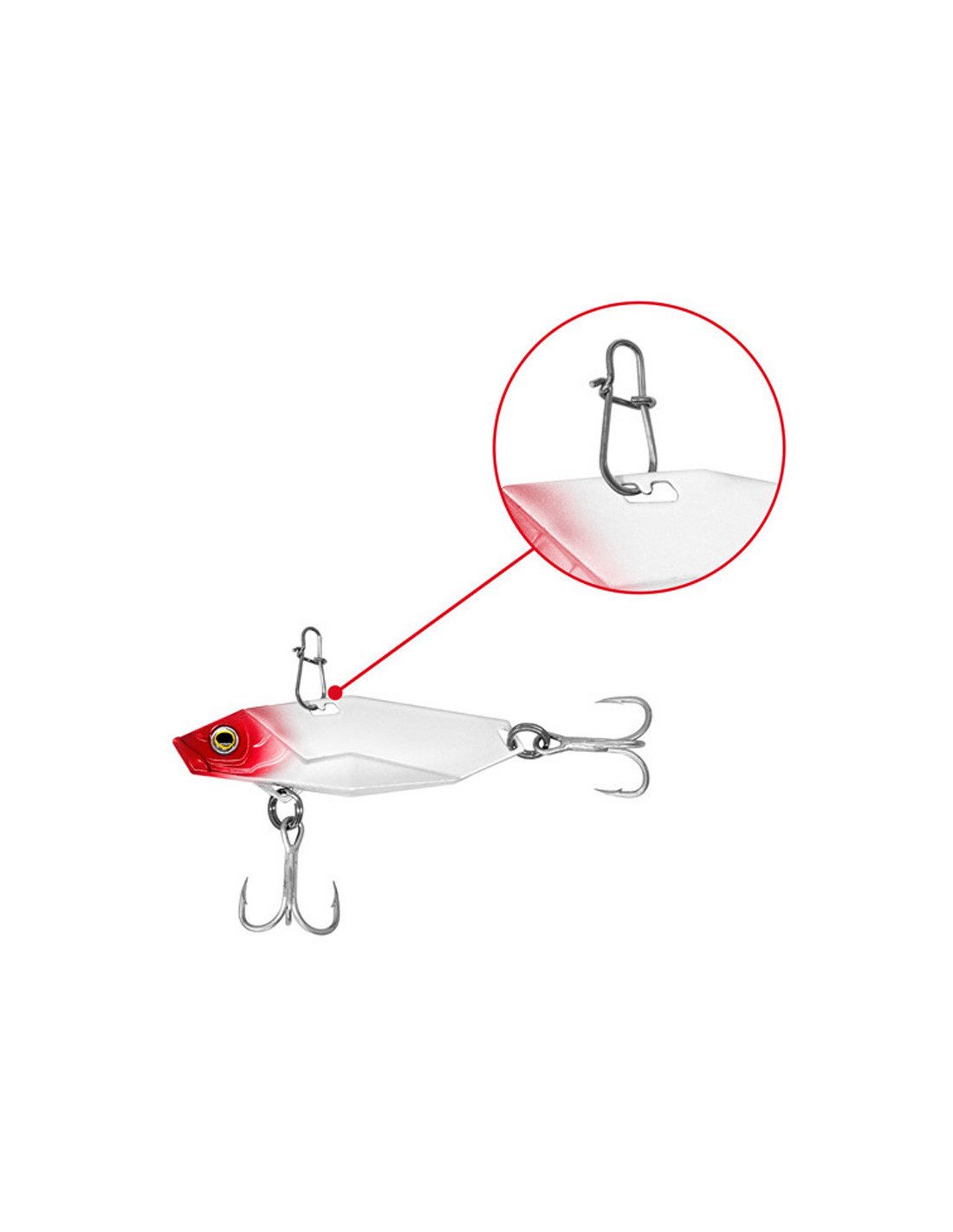Darüber hinaus ähnelt die Silhouette dieses Vibra-Köders einem kleinen Fisch, der durch die 3D-Augen noch realistischer wirkt. Nutzen kannst du diesen Köder beim Eisangeln und zum Vertikalspinnfischen.