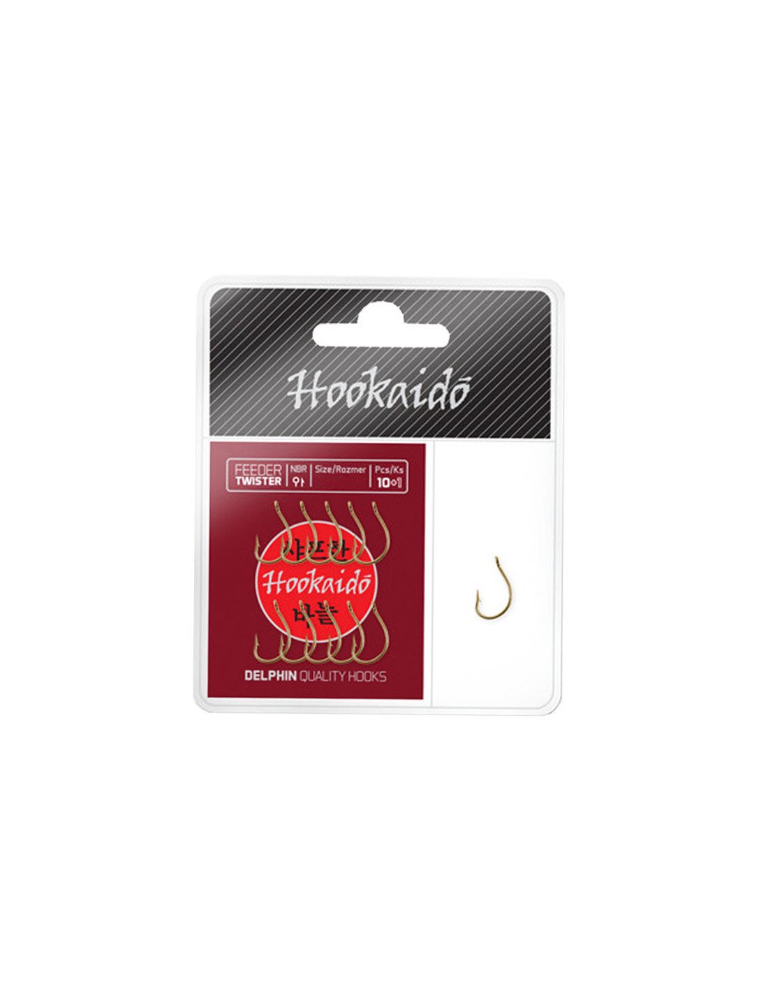 Die teilweise rote Verpackung der HKD Feeder Twister Hooks, aus dem Hause Delphin, steht bei dieser Haken-Serie für Haken, welche speziell für das tägliche Angeln entwickelt wurden.