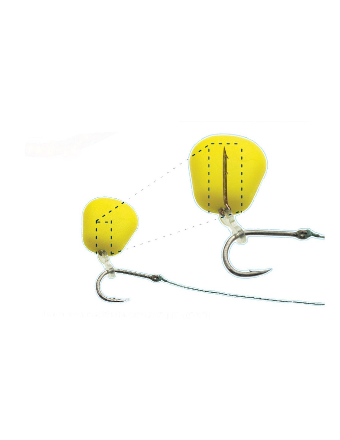 Bei diesem Produkt wurde der bewährte Köderspieß mit einem „8“-förmigen Silikonadapter kombiniert, welcher auf den Hakenschaft gezogen werden muss.