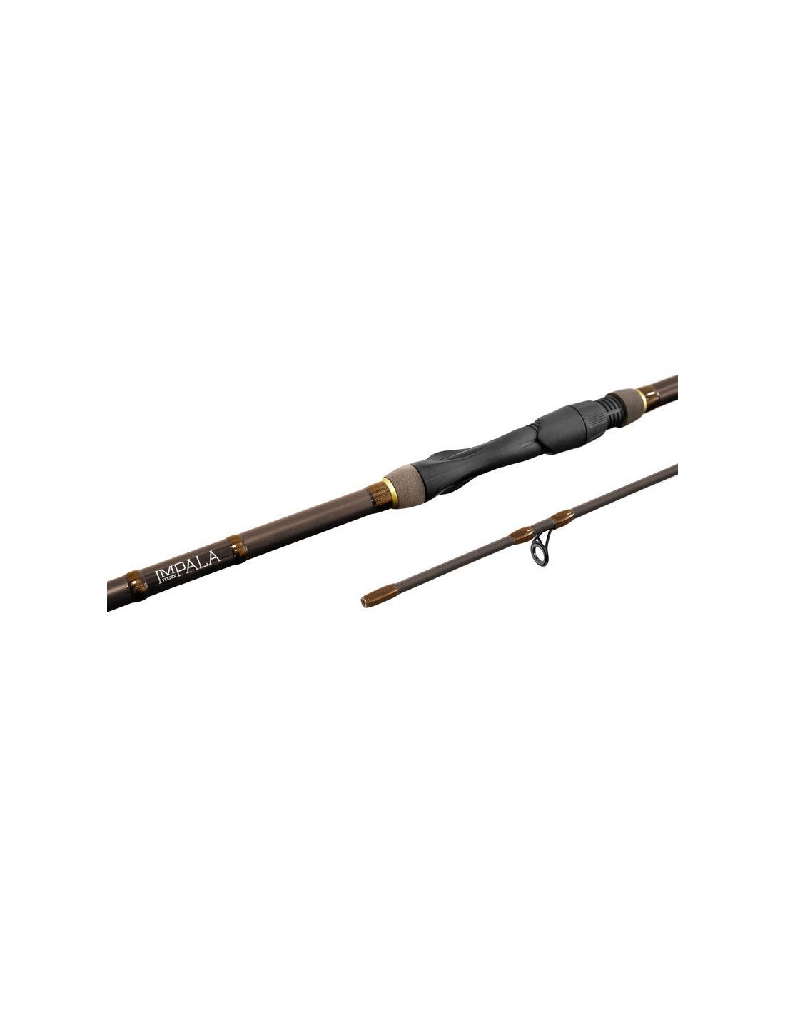 Das Design dieser Top-Rute wird dich von den Socken hauen. Die mattbraune Farbe des Blanks machte nämlich bereits die Vorgängerversionen berühmt. Denn die Kombination dieser Farbe mit Kupferelementen ist unvergleichlich und fügt sich exzellent in die umgebende Natur ein. Der Griff besteht aus braunem FullShrink-Material und wird durch eine braune Endkappe aus EVA-Material ergänzt, welche ein Aluminium-Finish in Kupfer besitzt, auf dem das Logo der Impala Feeder-Serie prangt.