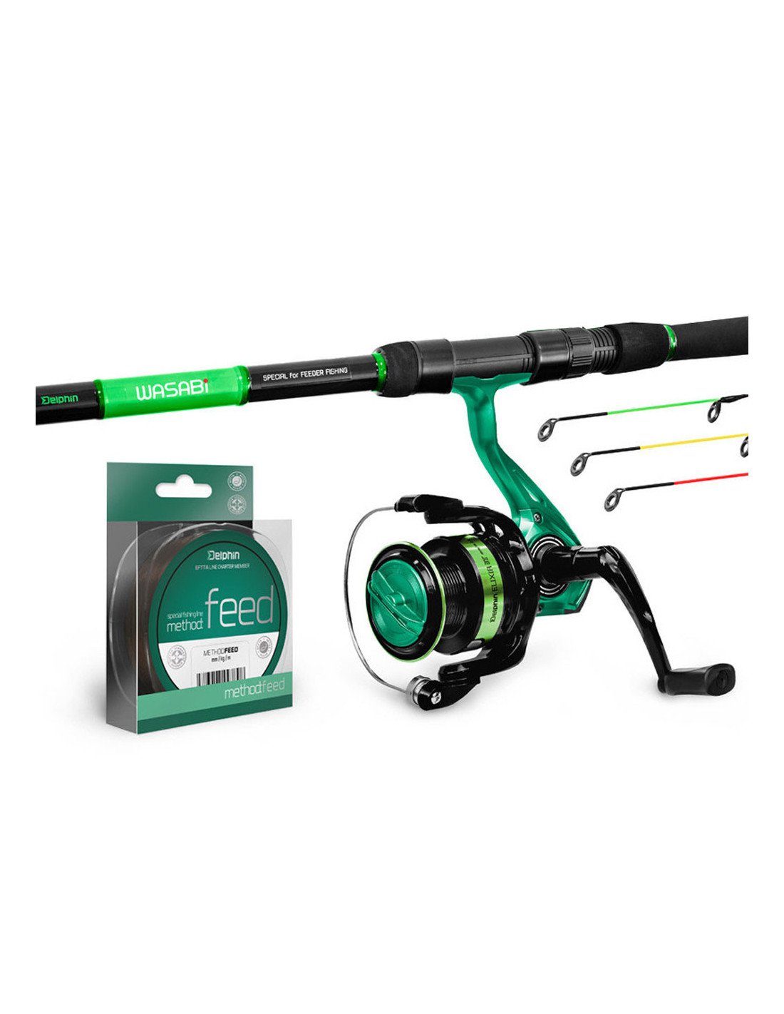 Delphin GreenFeed Premium Feeder Set mit Rute 360cm Rolle und Angelschnur Geschenk Set