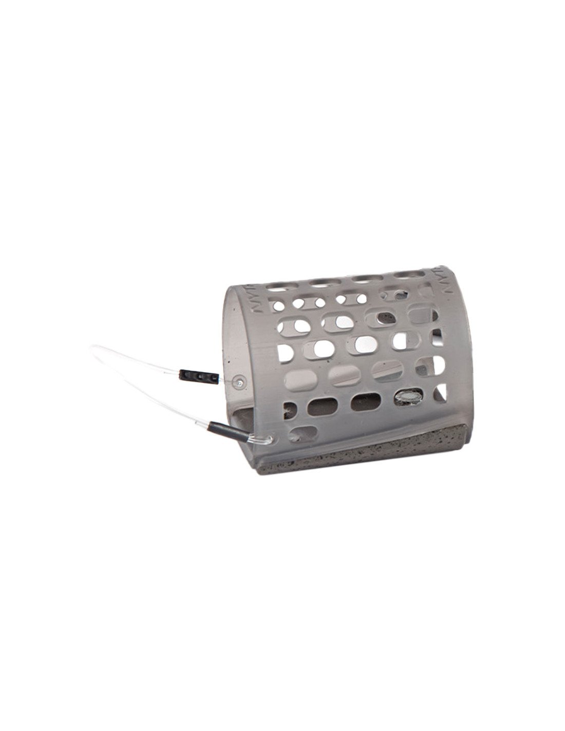 Genau genommen sorgt die nach vorne gerichtete Gewichtsverteilung, an der Seite des Feederkobes, für mehr Genauigkeit und höhere Wurfweiten. Außerdem fliegt der Futterkorb dadurch gerade und bietet weniger Widerstand beim Einholen, im Wasser.