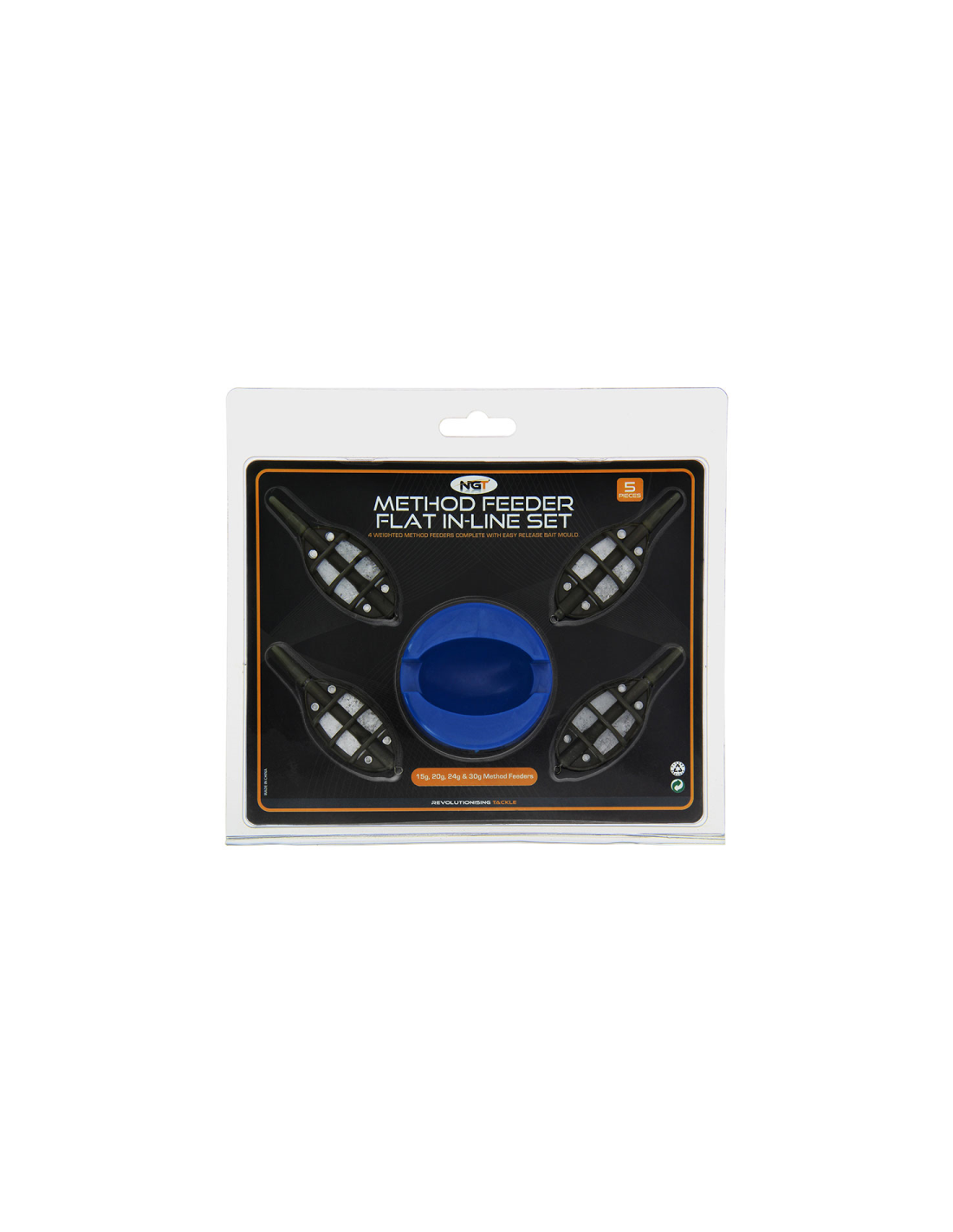 Das Method Feeder Set 4+1, aus dem Hause NGT, beinhaltet vier eiförmige Feederkörbe und eine blaue Mould in höchster Qualität.