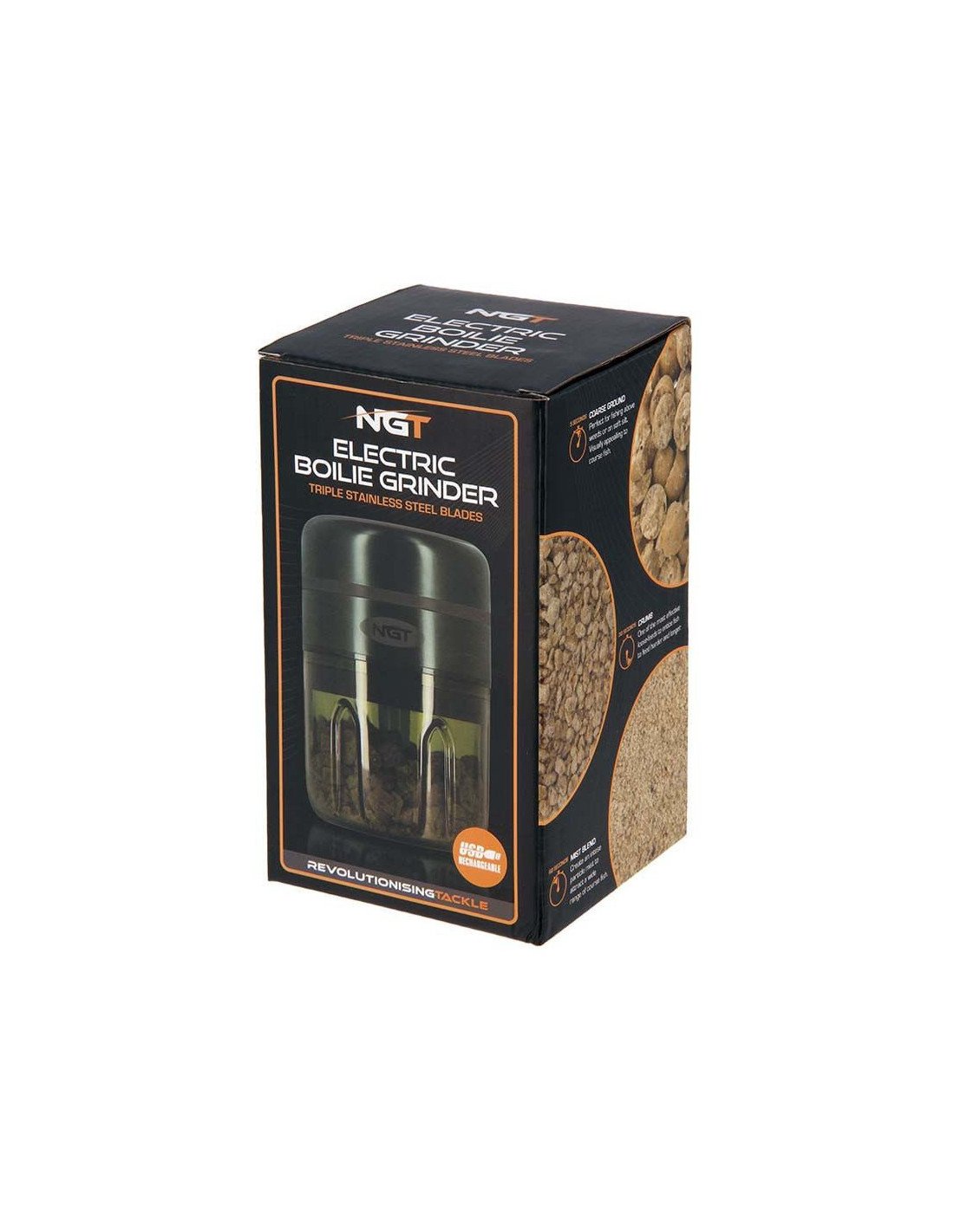 Mit dem Electric USB Rechargeable Boilie Grinder, aus dem Hause NGT, kannst du Boilie oder Pellett-Krümel für PVA-Beutel, Sticks und Spod-Mixe herstellen.