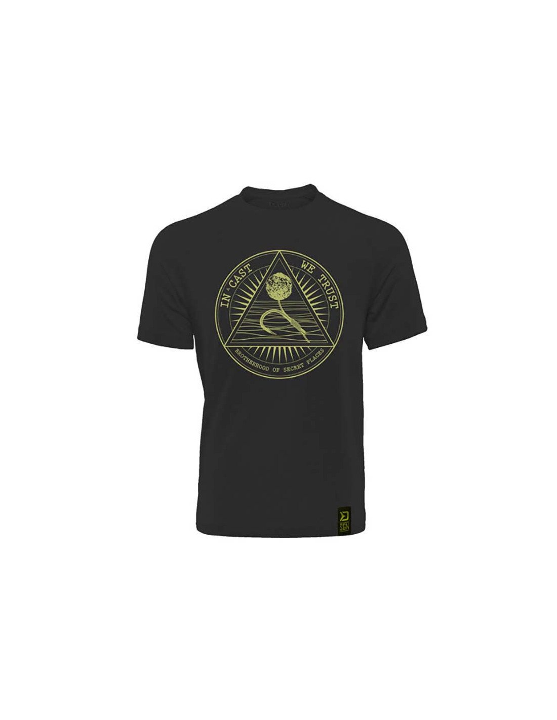 Auf der Vorderseite sticht es mit einem ungewöhnlichen Motiv hervor, das die geheimnisvolle Angelbotschaft IN CAST und WE TRUST (we believe in casting) trägt. Das Design des T-Shirts wird außerdem durch ein Motiv knapp unterhalb des Halssaums auf der Rückseite geschmackvoll ergänzt.