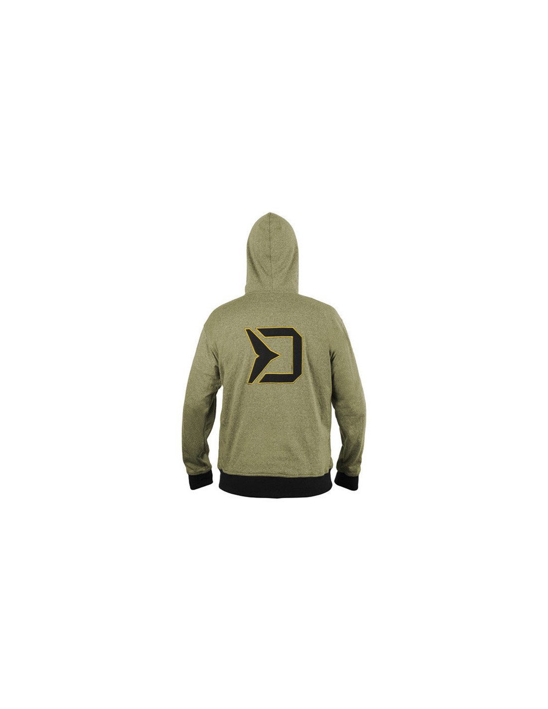 Der Hoodie besitzt Top-Reißverschlüsse der Marke YKK. Die Zipper sind mit dem Delphin-Logo versehen. Auf der Rückseite befindet sich ein großes stylishes Delphin-Logo, das geschmackvoll in Grün eingefasst ist.