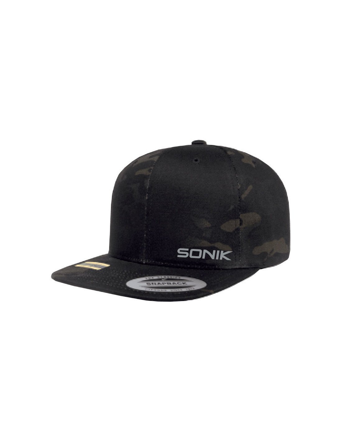 Die Multicam Snapback Cap, aus dem Hause Sonik, verfügt über einen geraden Schirm und einen verstellbaren Verschluss auf der Rückseite.