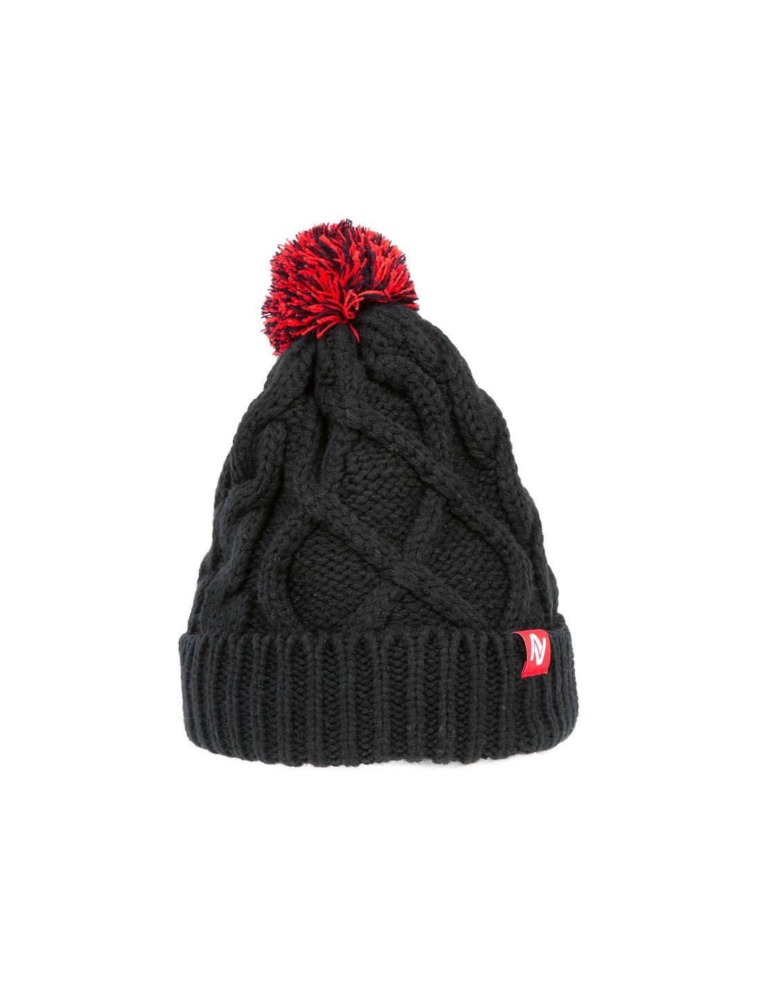 Allerdings punktet diese Strickmütze nicht nur mit diesen Merkmalen, sondern ebenso mit ihrem dezenten, schwarzen Design mit markanten roten Akzenten, wodurch du, mit dieser Haube, immer und überall gut aussiehst.