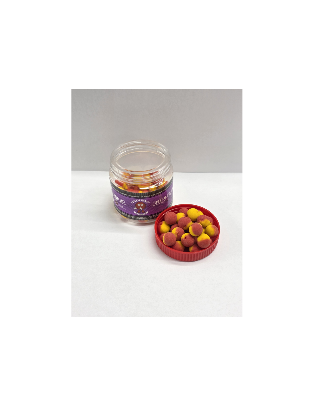 Der Pop Up Special Fruits von Dudi Baits ist ein hochwertiger auffälliger Hakenköder der speziell für anspruchsvolle Karpfenangler entwickelt wurde.
