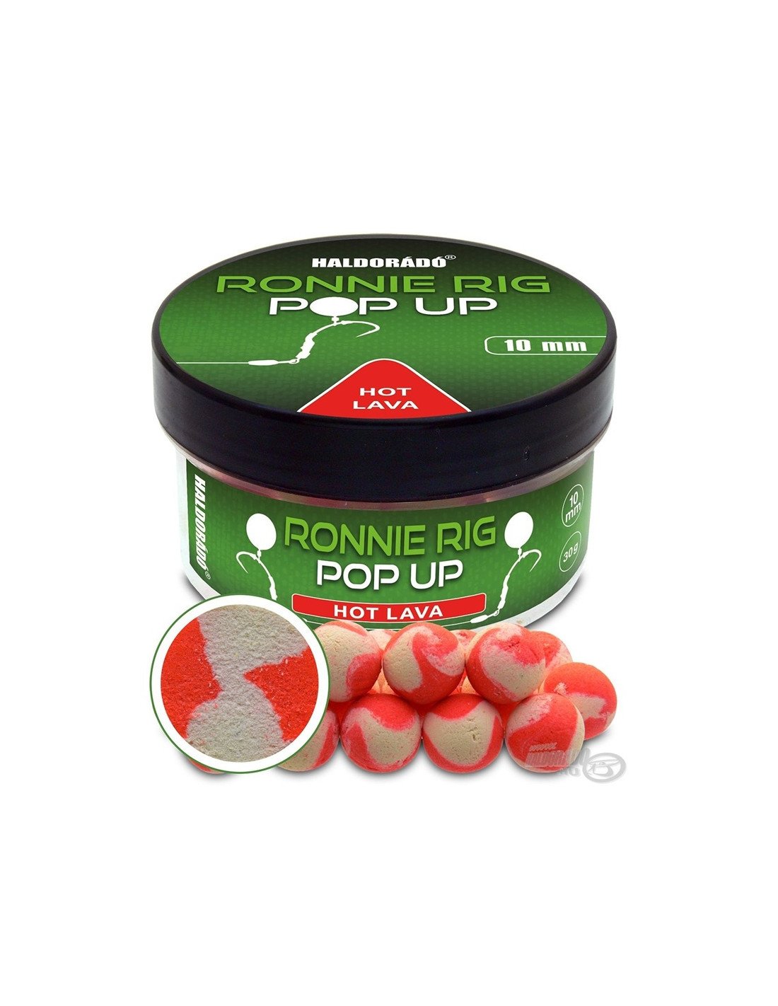 Die Ronnie Rig Pop-Up-Kugeln – Hot Lava sind zweifarbige, spektakuläre und extrem aromatische Köder, die speziell für den Einsatz am Ronnie Rig entwickelt wurden. Mit ihrem enormen Auftrieb sorgen sie für eine perfekte Köderpräsentation und heben sich deutlich vom Gewässergrund ab. Das intensive Hot-Lava-Aroma mit würzigem Chili-Geschmack in Kombination mit der auffälligen fluoreszierenden Farbgebung in Rot und Weiß erzeugt sowohl olfaktorische als auch visuelle Reize, denen Karpfen kaum widerstehen können.