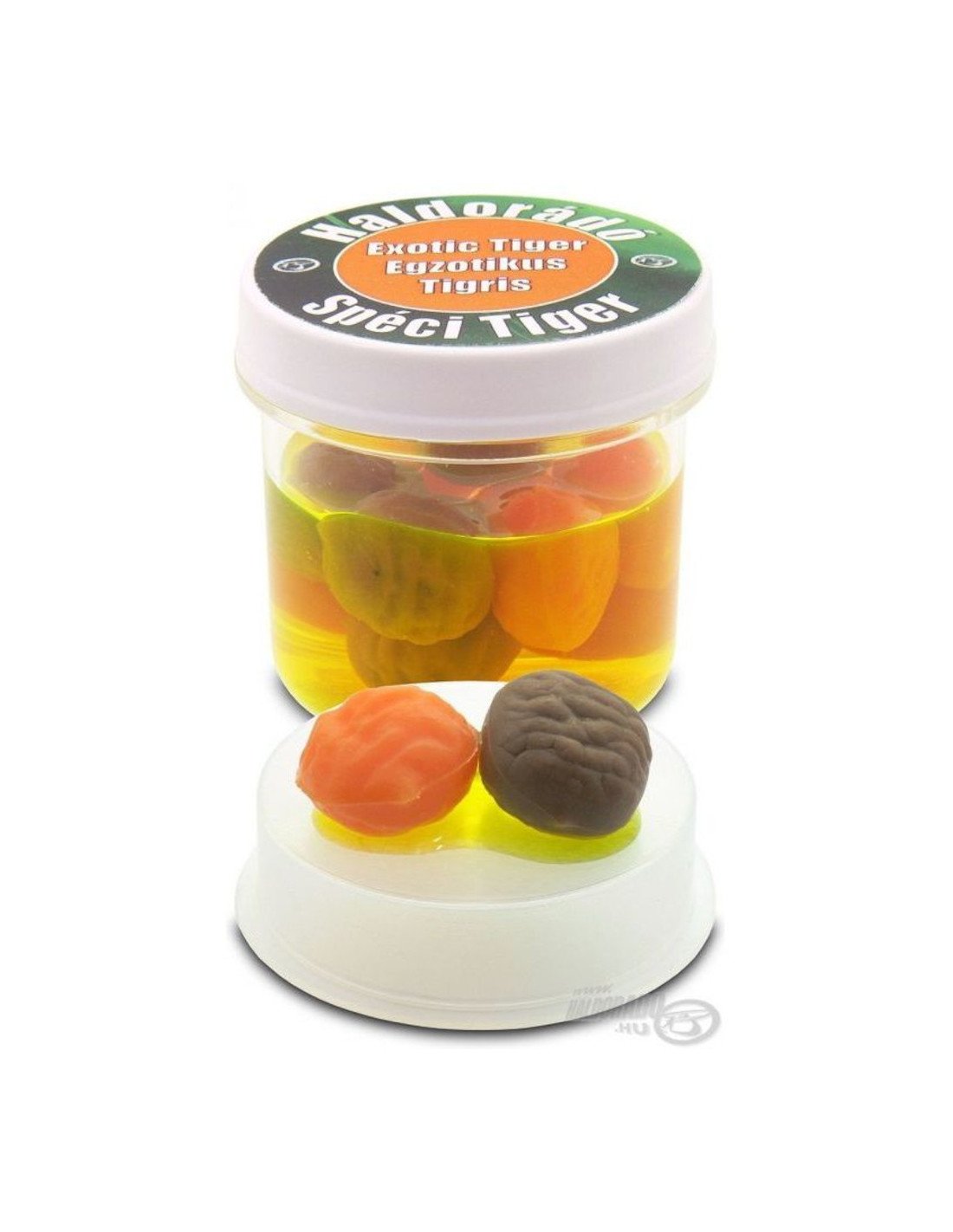 Das Glas enthält Fake-Tigernuss in 2 Farben, die ein köstliches Aroma verströmen, und ist sehr effektiv, wenn es auf einem Köderspieß angeboten wird.