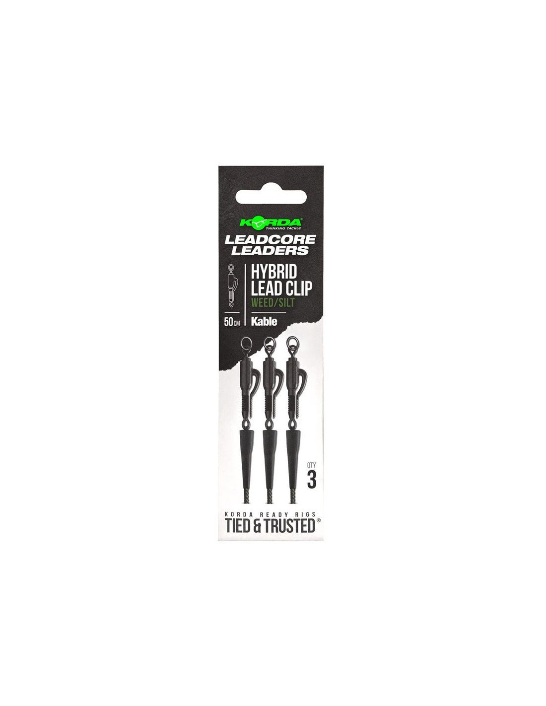 Korda Kable Leadcore Leader Hybrid Lead Clip Weed Silt 50cm 3 Stück