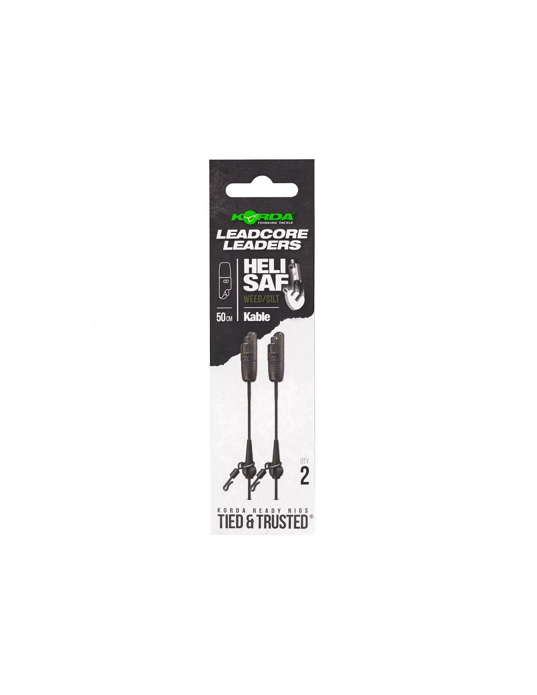 Korda Kable Leadcore Leader Heli Safe Weed Silt 50cm 2 Stück Helicopter Montage