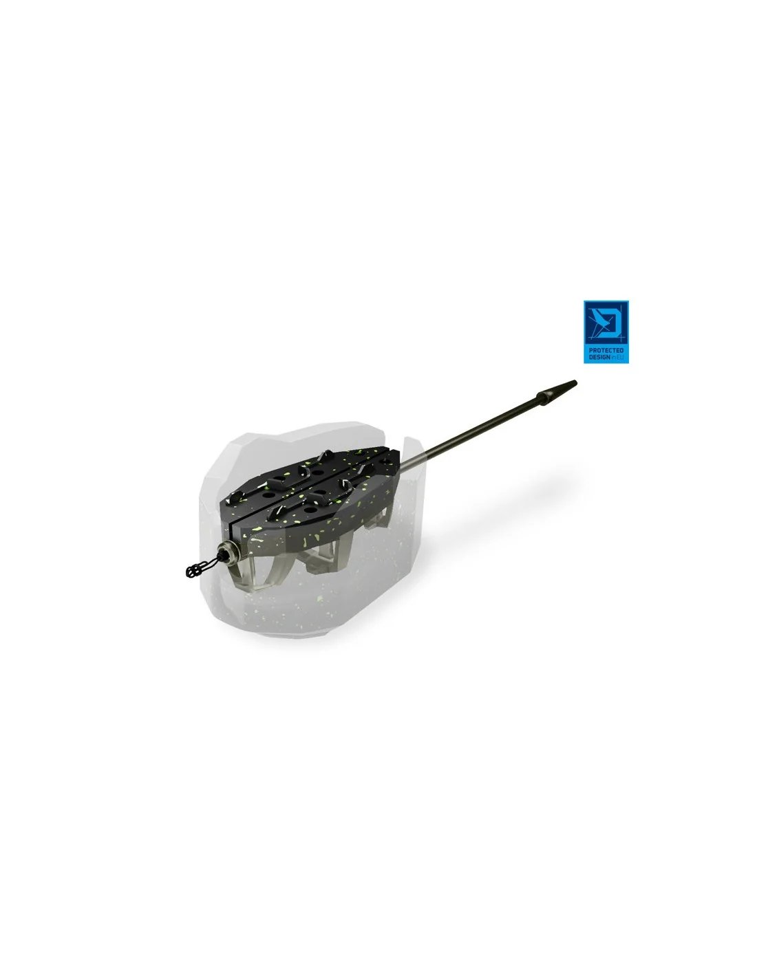 Besondere Vorsprünge am Stahlgewicht gewährleisten einen stabilen Halt am Grund – selbst bei Strömung. Das integrierte Schnellwechselsystem ermöglicht einen unkomplizierten Austausch ohne Demontage der Montage.