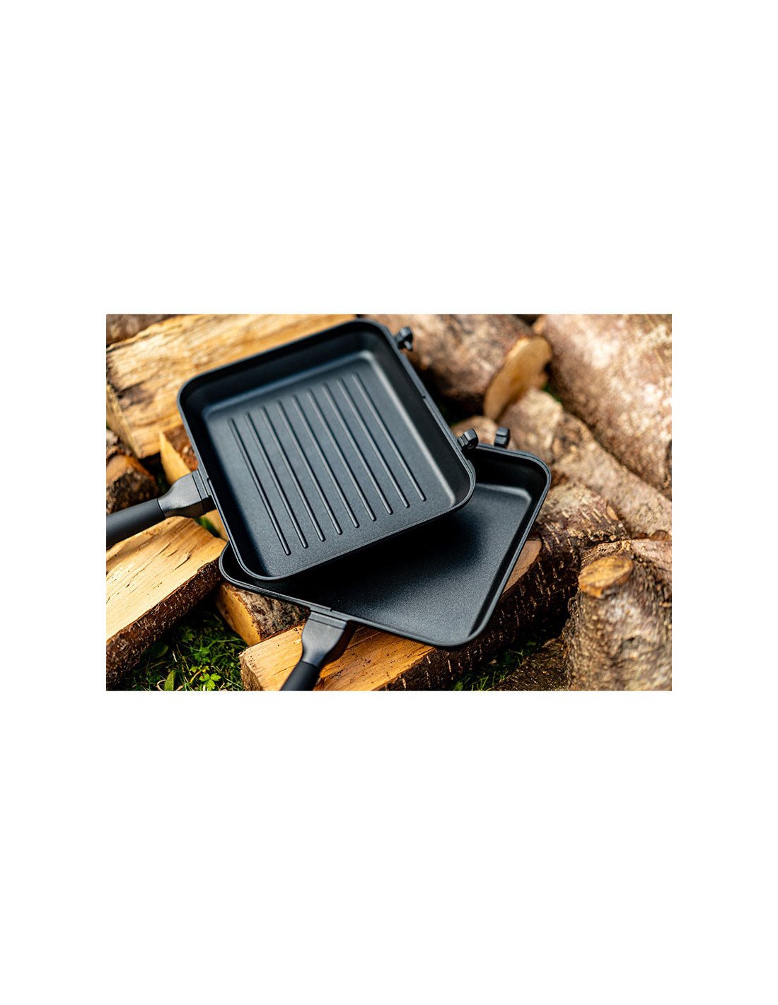 Trennst du die beiden Pfannen voneinander so hast du auch noch die Wahl zwischen einer glatten Pfanne und einer Pfanne mit Rillen.
