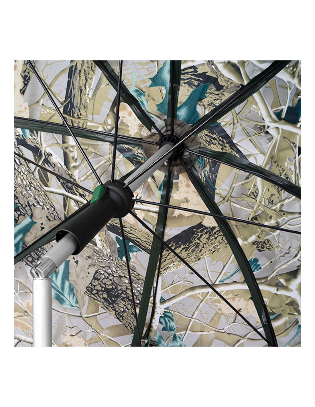 Der Schirm verfügt über ein Gelenk, mit dem die Neigung der Kuppel eingestellt werden kann, so dass Du den Schirm den Sonnenstrahlen, aber auch dem Wind anpassen kannst. Du kannst den Schirm in der Höhe verstellen, um ihn Deinen Bedürfnissen anzupassen, was auch die Befestigung in dem unwegsamen Gelände erleichtert.