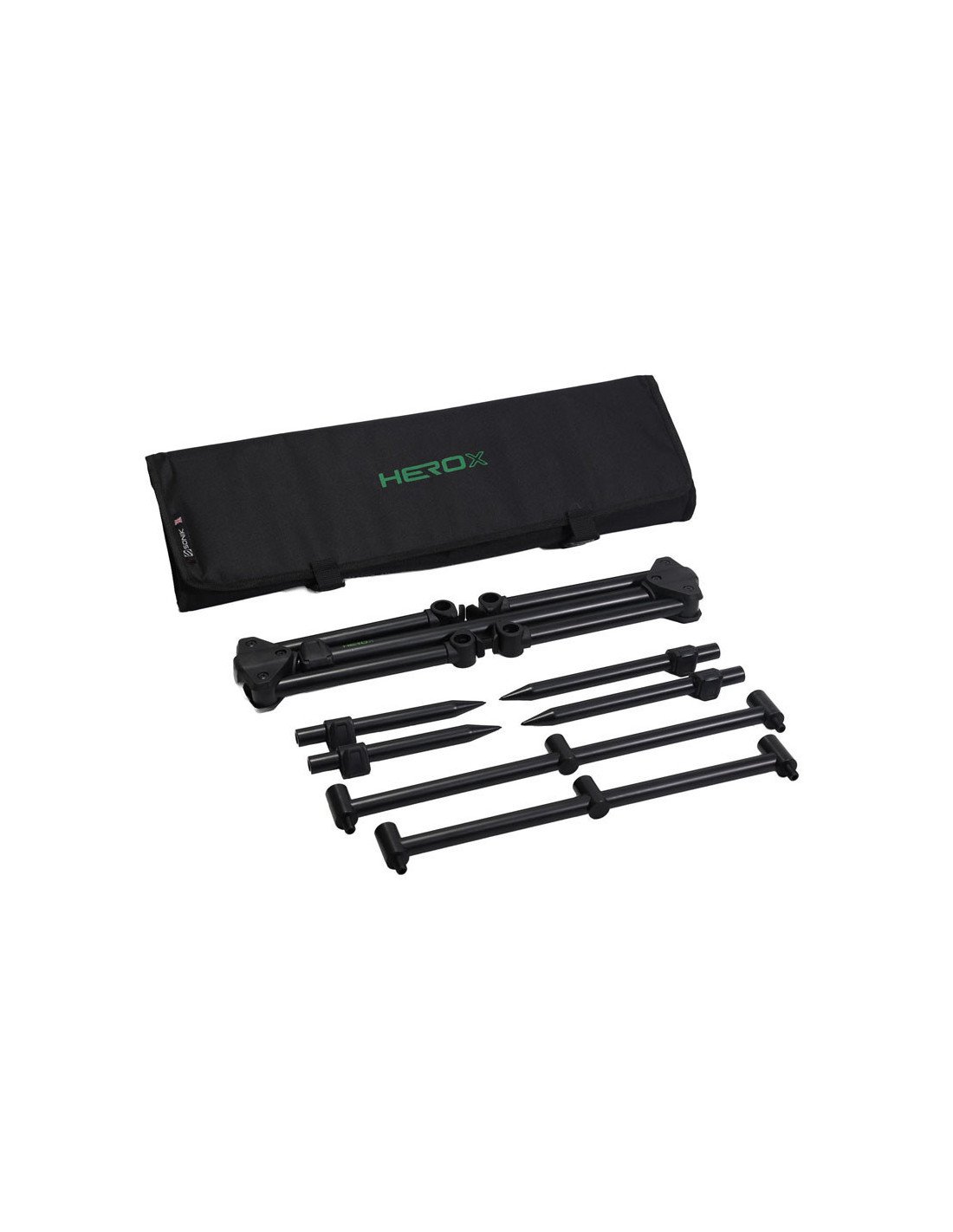 Geliefert wird das einmalige HEROX 3 Rod Pod in einer praktischen, zusammenfaltbaren, gepolsterten Transporttasche, in welcher auch noch genügen Platz für die Bissanzeiger (nicht inkludiert) und Rutenhalterungen (nicht inkludiert), die du an die Buzzerbars montiert lassen kannst, vorhanden ist.