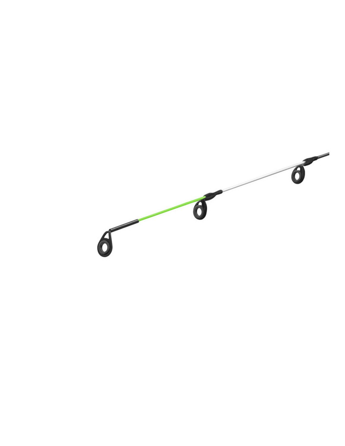 Der Rutenblank ist mit umformten Ringen mit der SIC-Füllung ausgestattet, die die Schnur perfekt führen und gleichzeitig verhindern, dass sich diese beim Werfen verheddern. Dank ihrer schwarzen Farbe, zusammen mit dem matten Blank und dem Kork am Griff, entsteht ein raffiniertes, sportlich-elegantes Design, das durch die frischen, weiß-grünen Elemente ergänzt wird.