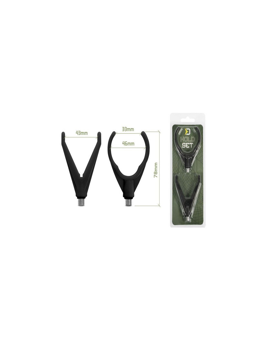 Nutze das HoldSET, von Delphin, bestehend aus einen vorderen und hinteren Rutenhalter, beim Feeder-, Grund- und Schwimmer-Angeln.