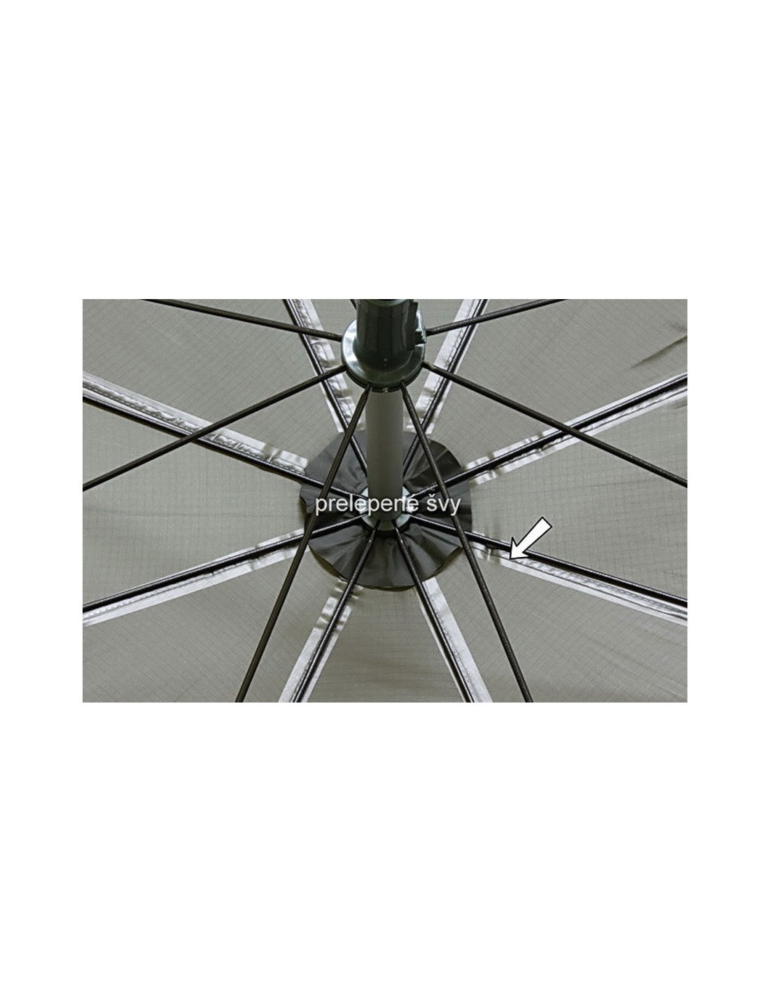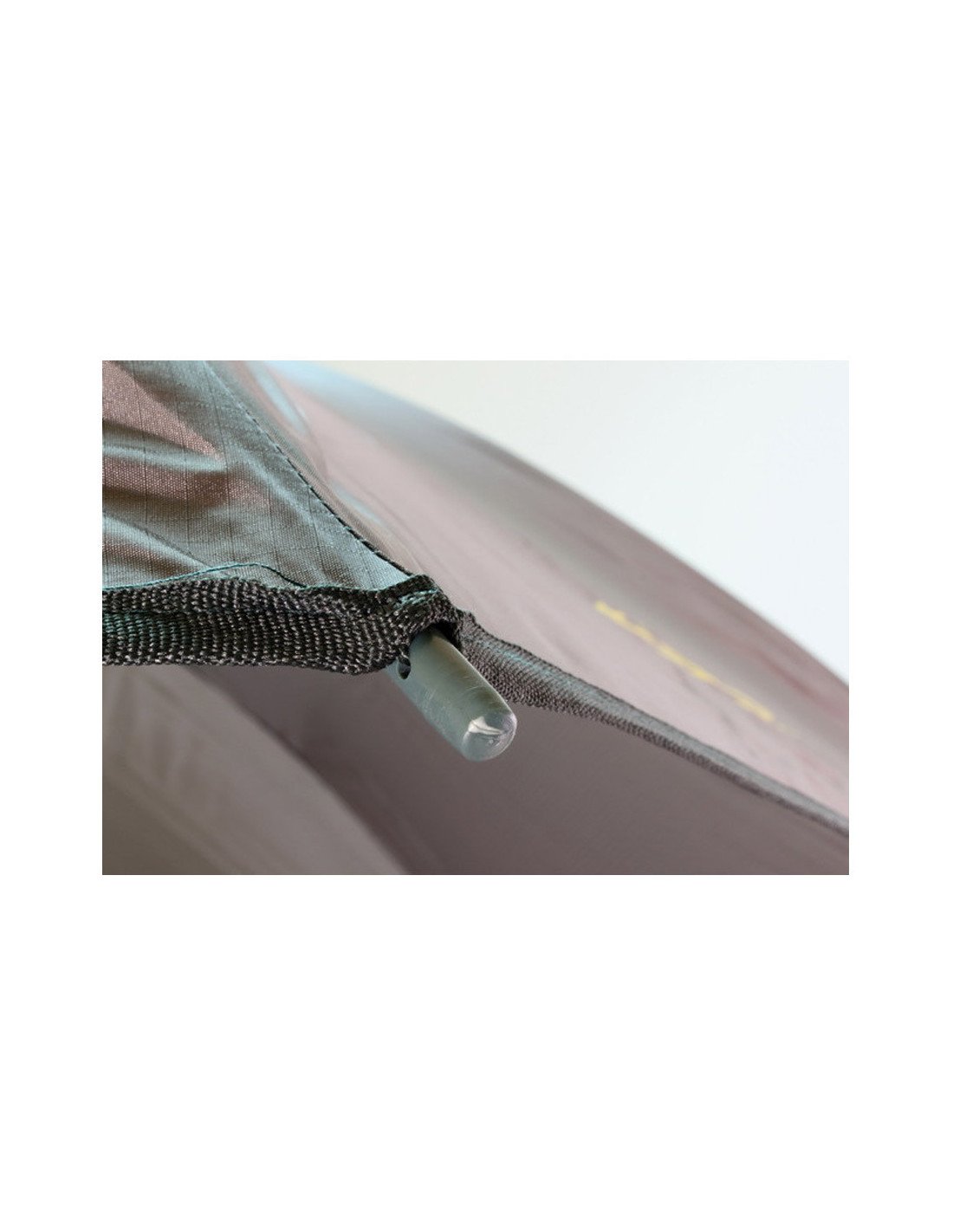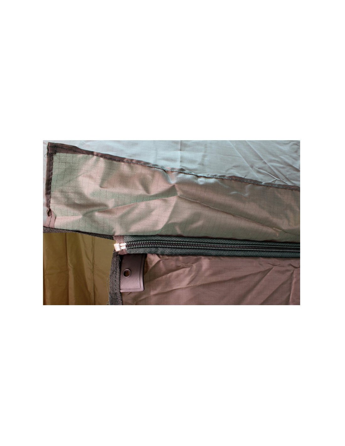 Die Seitenwand wird am Schirmrand mittels eines Reißverschlusses befestigt. Der untere Teil der Seitenwand ist mit Griffen ausgestattet, die mit Sicherungsstiften am Boden fixiert werden. Der Reisverschluss ist zusätzlich mit einem Stoffstück abgedeckt und dadurch nahezu wasserdicht.